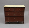 Fyra lådor. Tandad sargkant. Bemålad. Marmorerad skiva. Nyckel finns. Längd 108 Bredd 52 Höjd 95 cm.