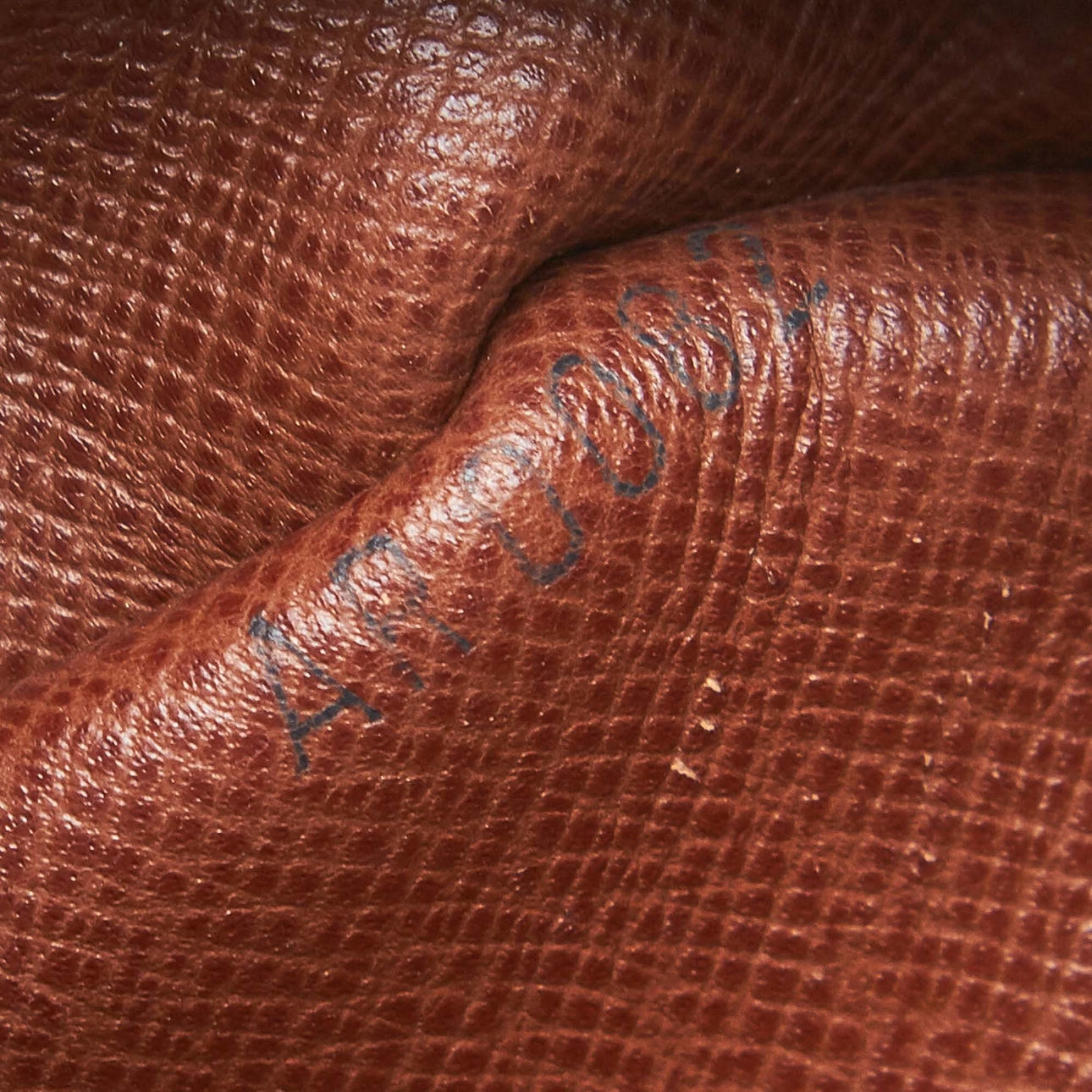 Bruksslitage. Mindre fläckar på läder. Läder vid spännen med slitage. Viss lukt.