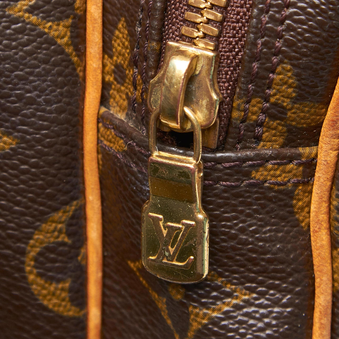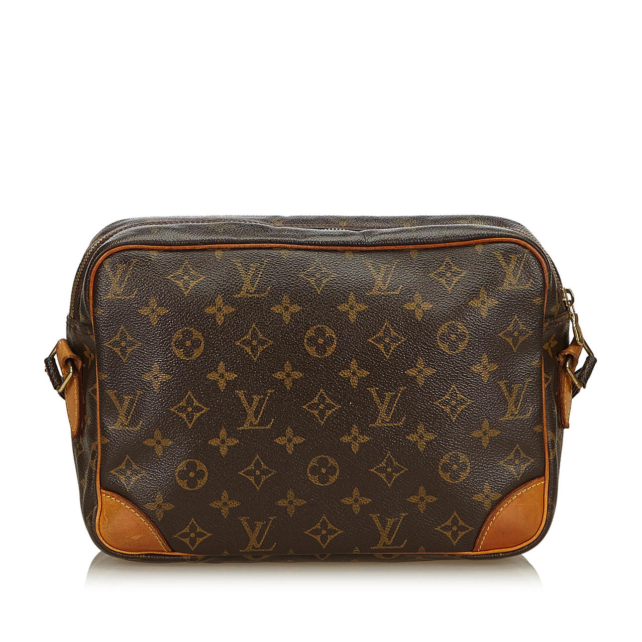 Canvas med monogramtryck. Handtag och dekor av läder. Två fack, varav ett med innerfack med dragkedja. Ställbara axelrem. Väskans längd ca 35 cm. Stämpelmärkt "Louis Vuitton, Paris, Made in France".