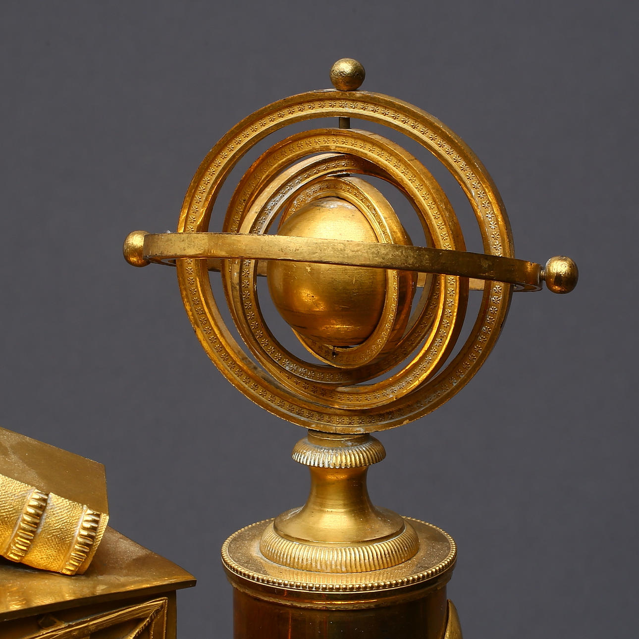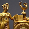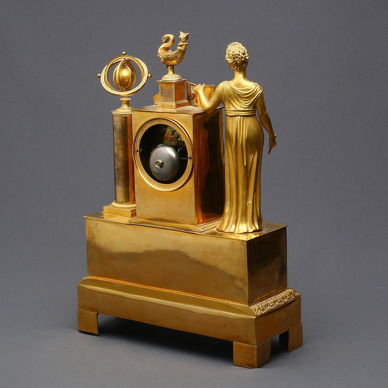 Brännförgylld brons. Höjd ca 46 cm, längd ca 32,5 cm.