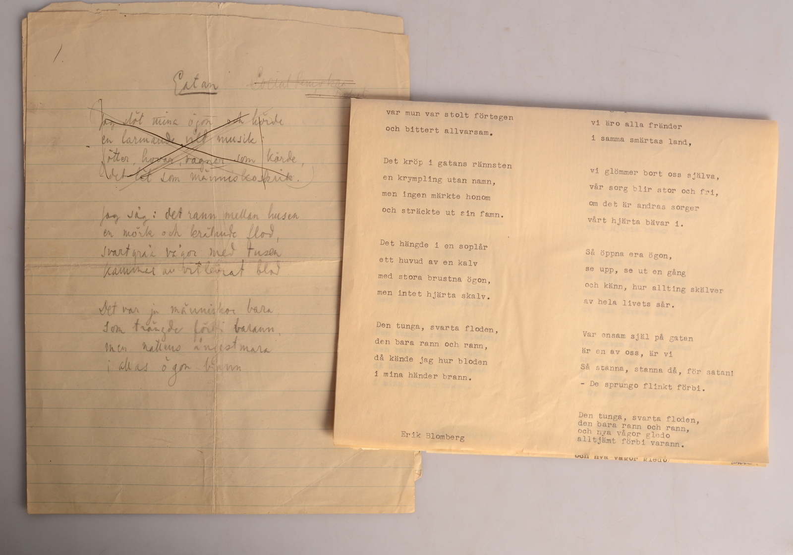 1007457. DIKTMANUSKRIPT, "Gatan", Erik Blomberg.