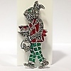 En emalj brosch/hänge i form av en servitörskanin som kan bäras som brosch eller hänge.