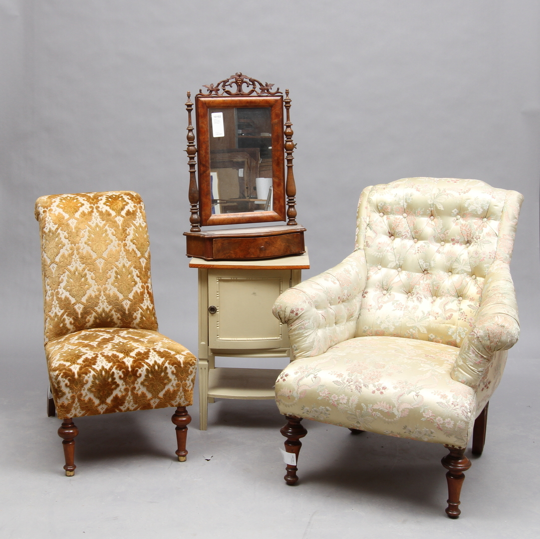 10102. FÅTÖLJ, PIGTITTARE, EMMAFÅTÖLJ, POTTSKÅP.