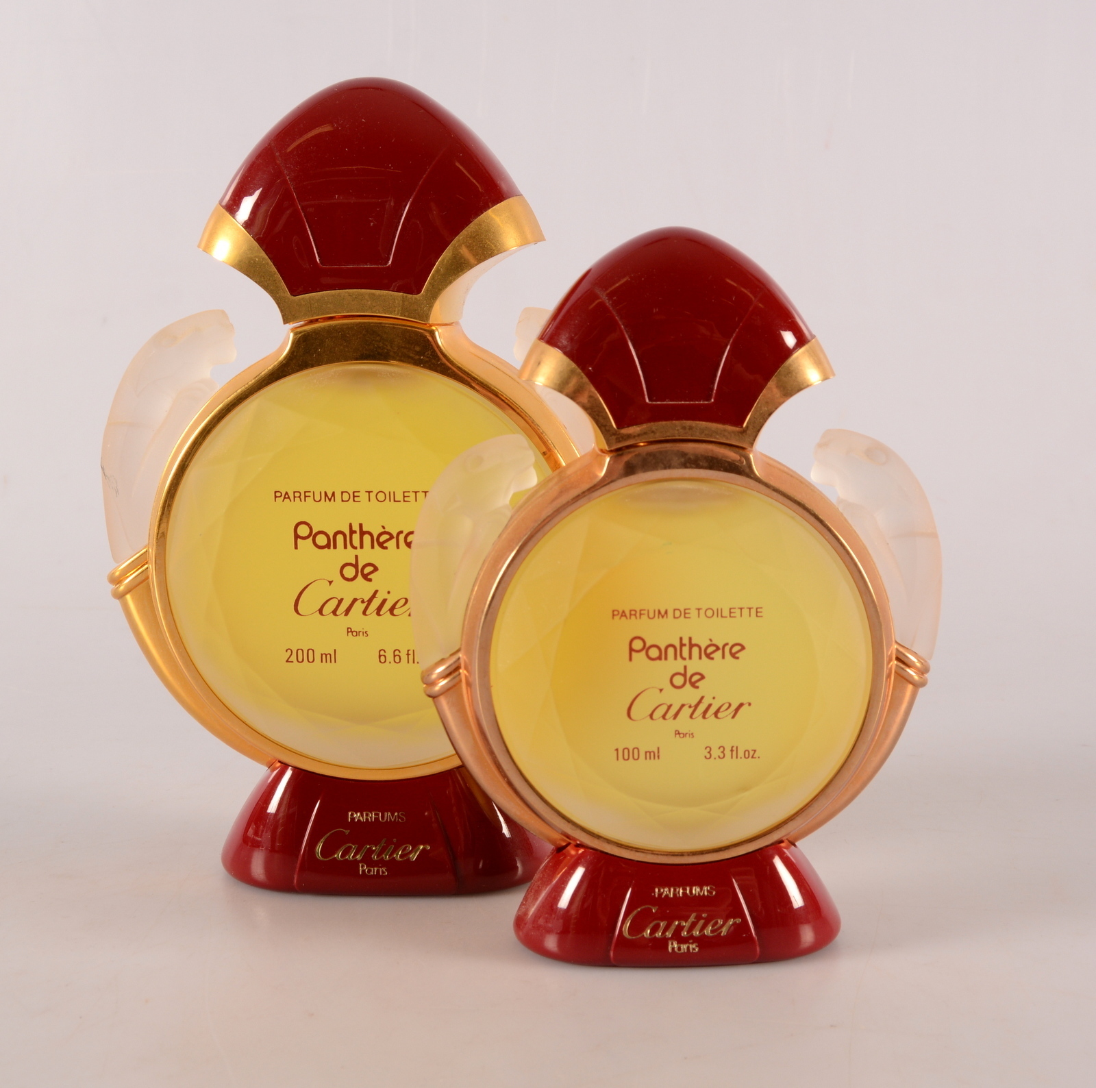 1015935. PARFYMFLASKOR, 2-stycken, glas, Cartier.