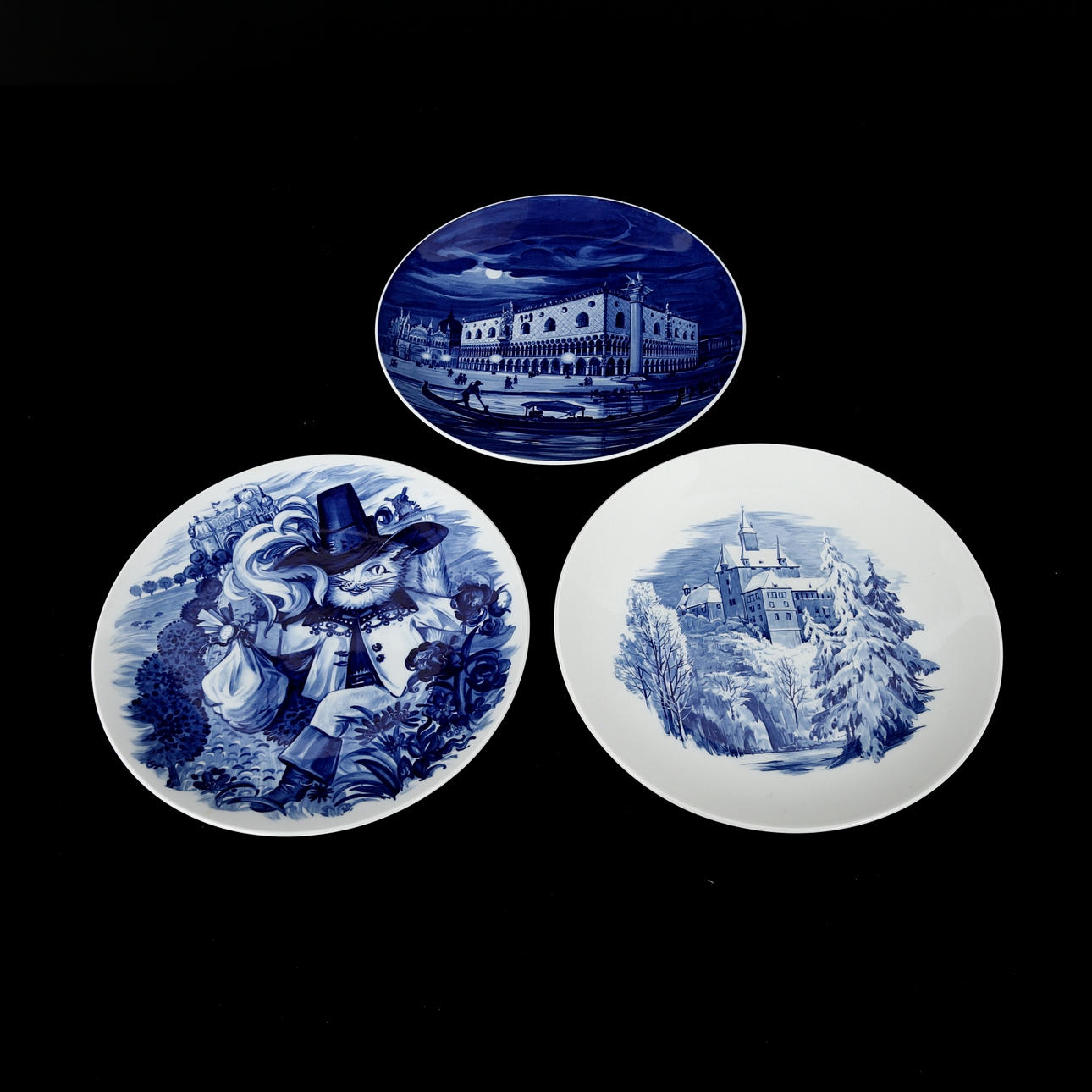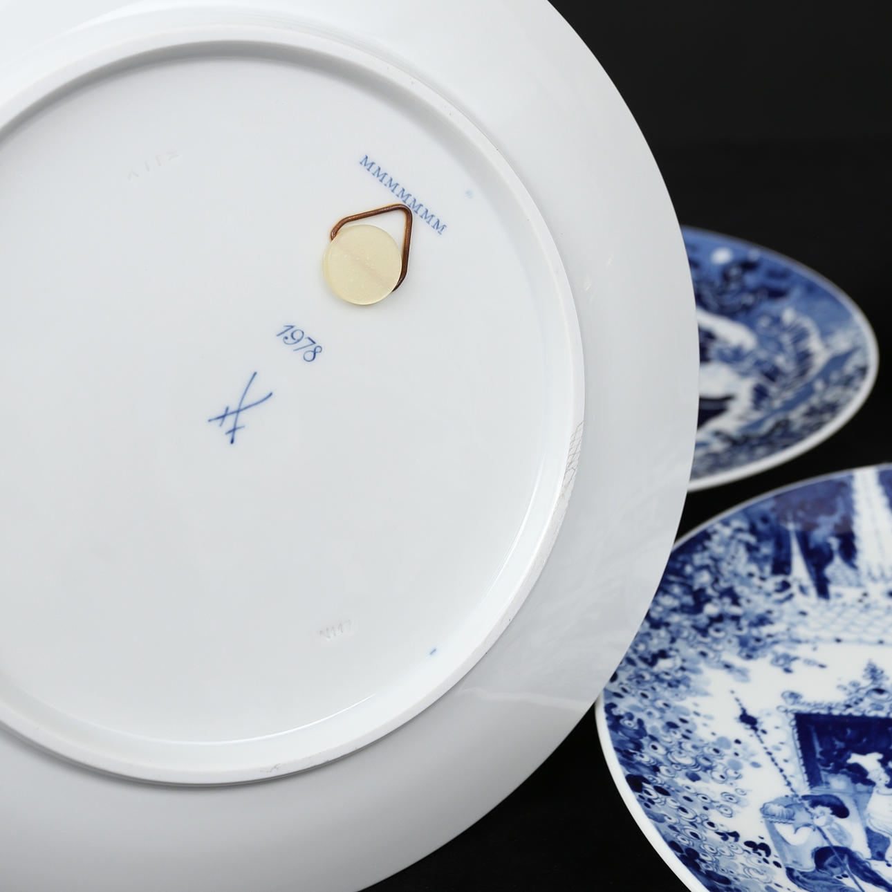 Tallrikar med underglasyrmåleri i blått