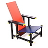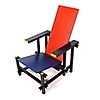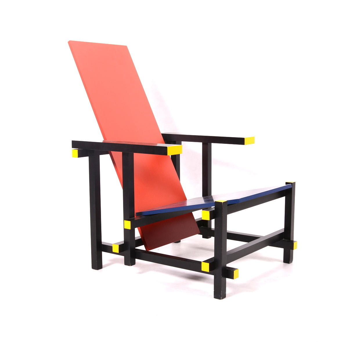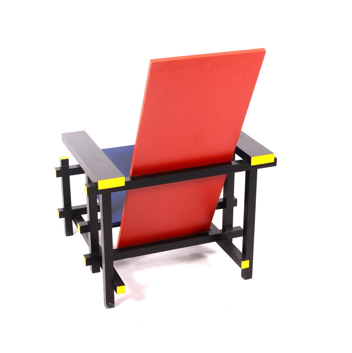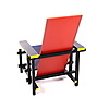 Lackerat trä i gult, rött, svart och blått. Rygghöjd, 88 cm. Sitthöjd, 33,5 cm.