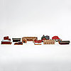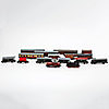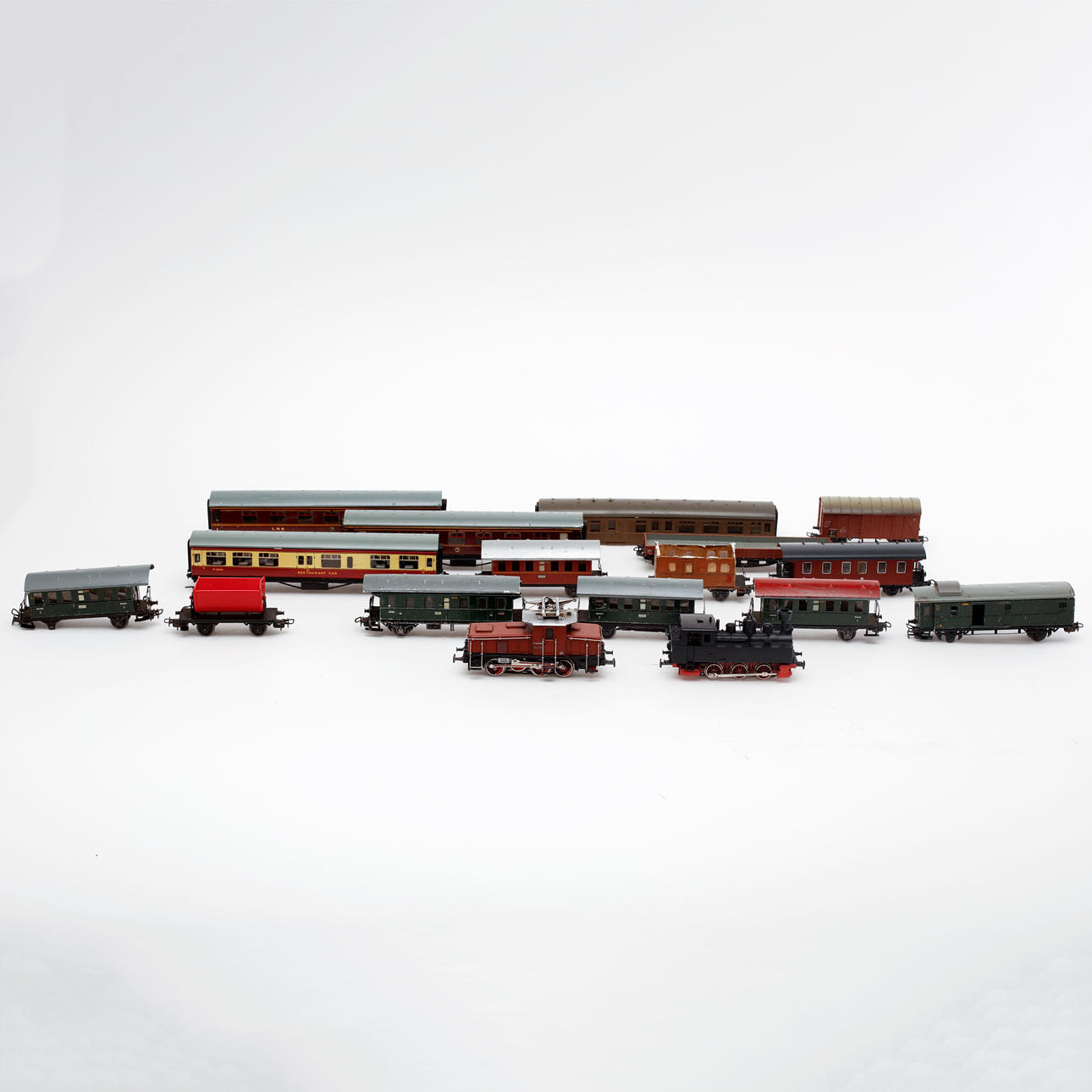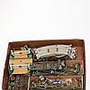 Bl.a. 3 st lok, vagnar, räls, hus.