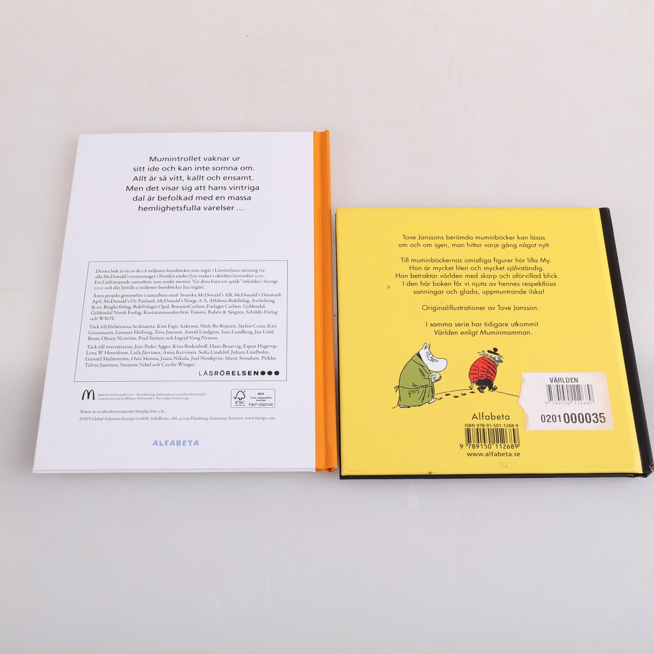 Sex stycken Mumin böcker och ett fat (rätt start).