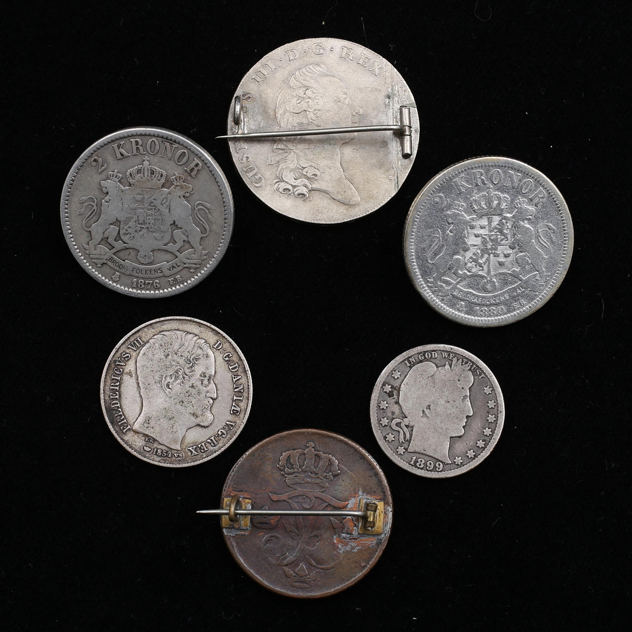 Brosch gjord av 1 riksdaler, Gustav III, 1779.