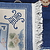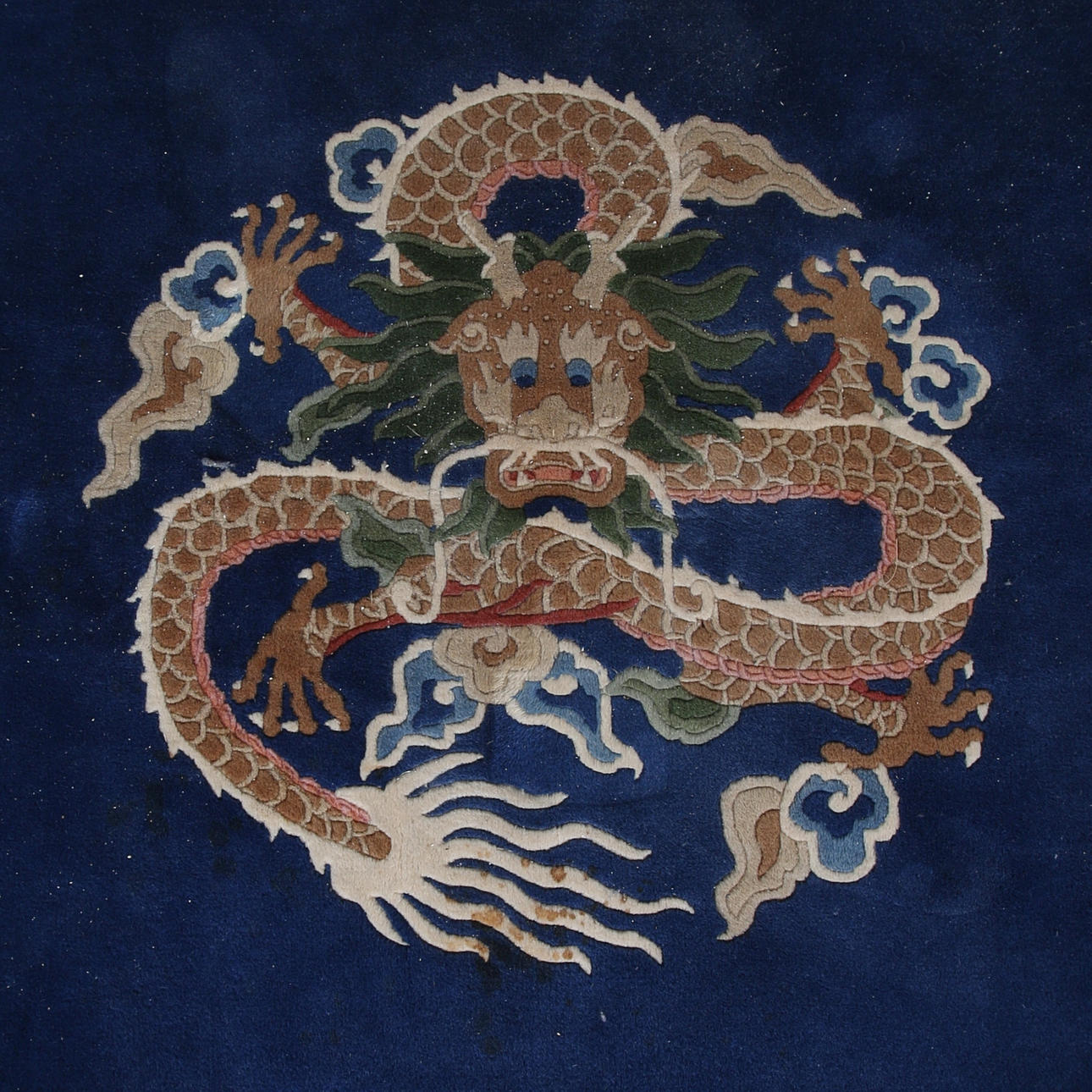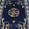 I blå och vit ton, med dekor av drakar.