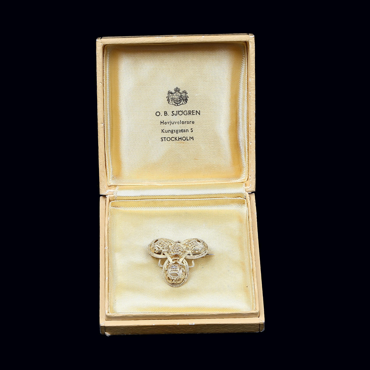 Brosch filigranarbete, 14K, 1800-tal, 5gr. Proveniens har tillhört Statsminister Johan O Ramstedt (1905) hustru Henrika Charlotta Torén.