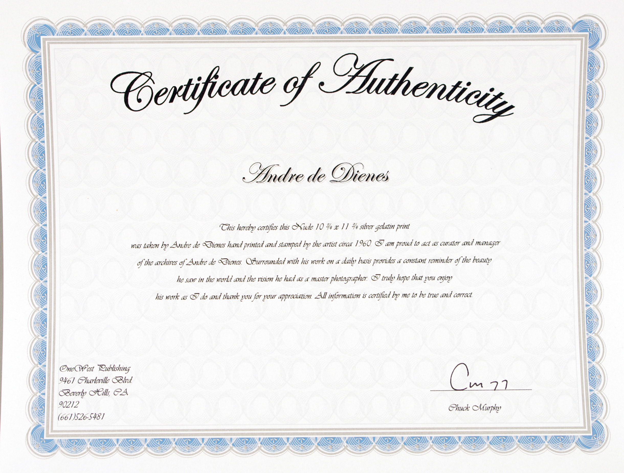 102958. ANDRE DE DIENES. Fotografi, stämpelsignerat.