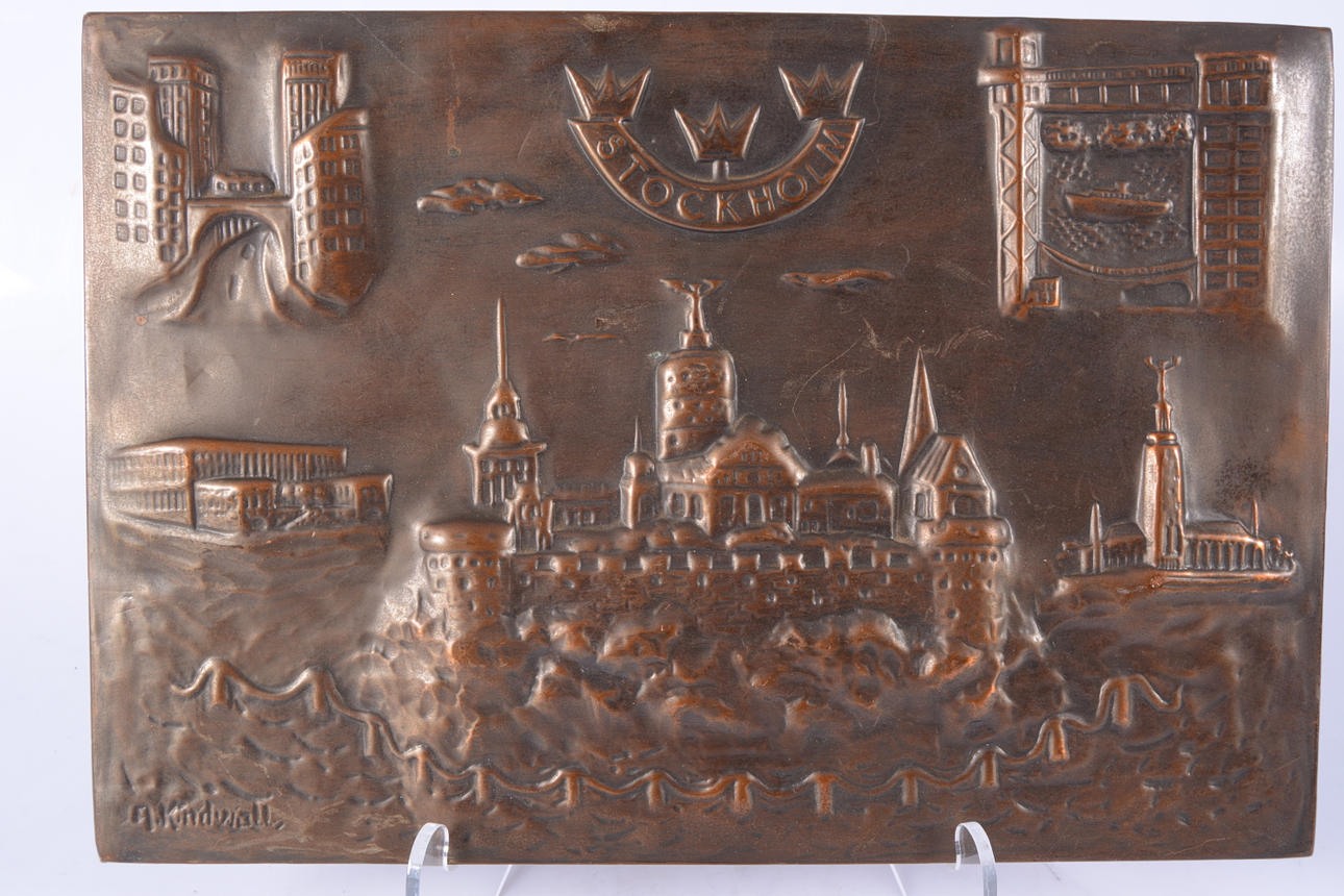 1029862. OIDENTIFIERAD KONSTNÄR. Väggtavla, koppar.