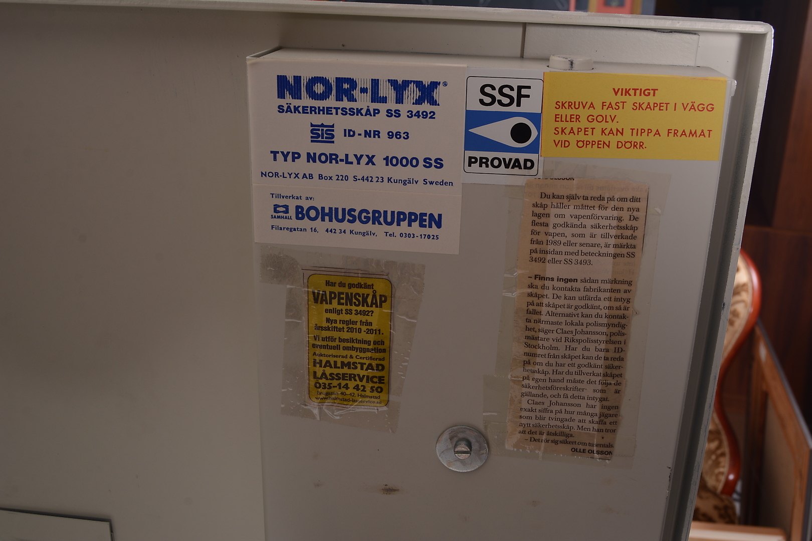 1035857. SÄKERHETSSKÅP, Nor-lyx, SS 3492.