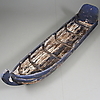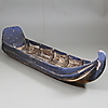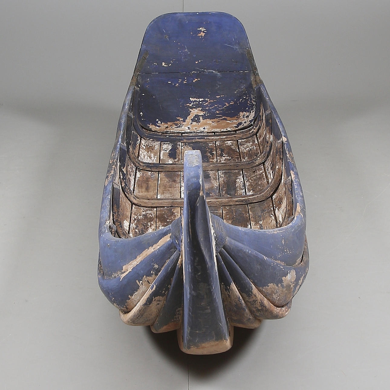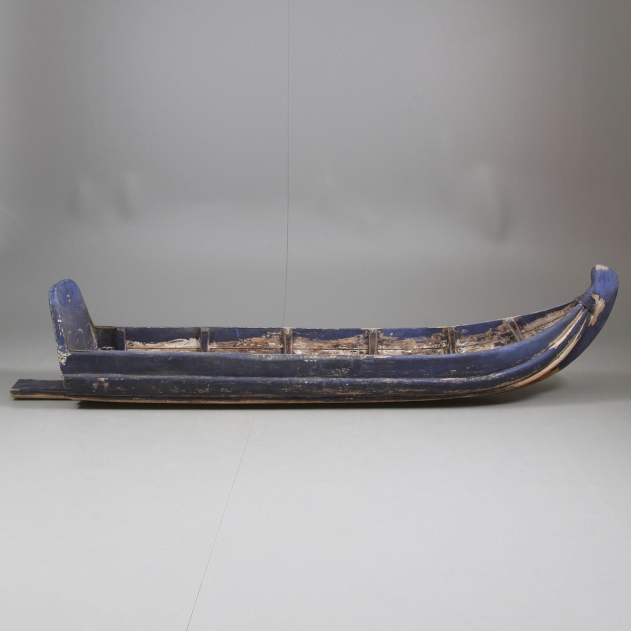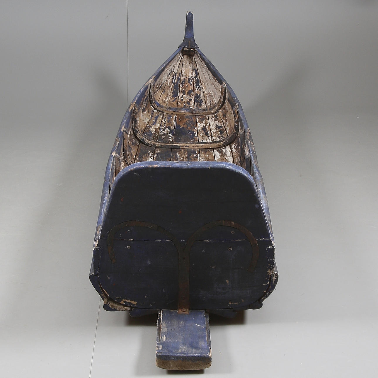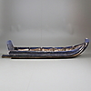 Bemålat trä, sannolikt björk. Längd ca. 201, bredd 47, höjd 65 cm.