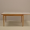 Två utdragbara extraskivor. Längd 119cm - 238,5 cm, bredd 80cm, höjd 74 cm.