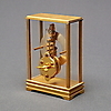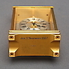 Ej funktionstestad, fjäder troligen maximalt uppdragen. Mindre spricka på glas på bakstycke. Gravyr på undersida "den 12 November 1967". Fotavslut saknas.