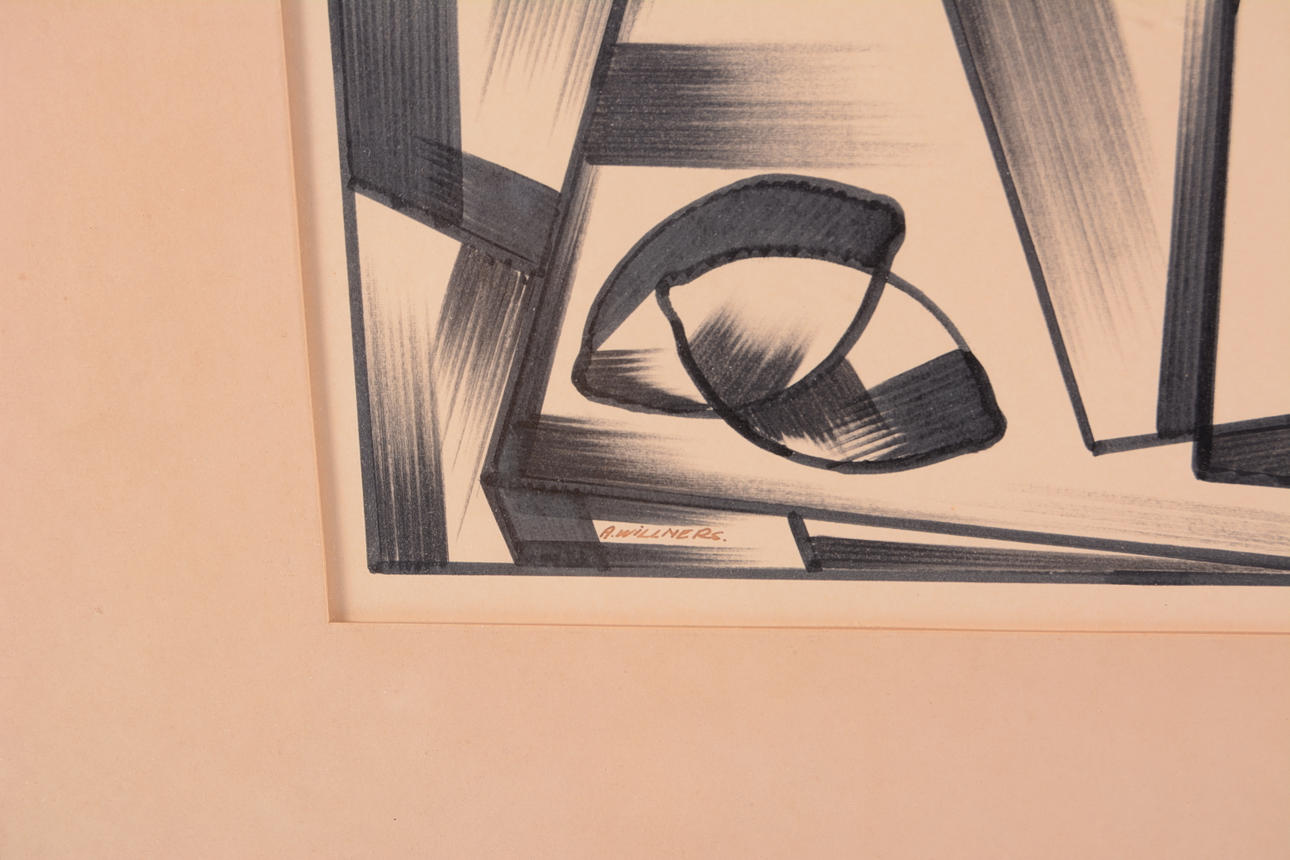 Kubistisk komposition med vas och skål. Signerad.