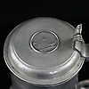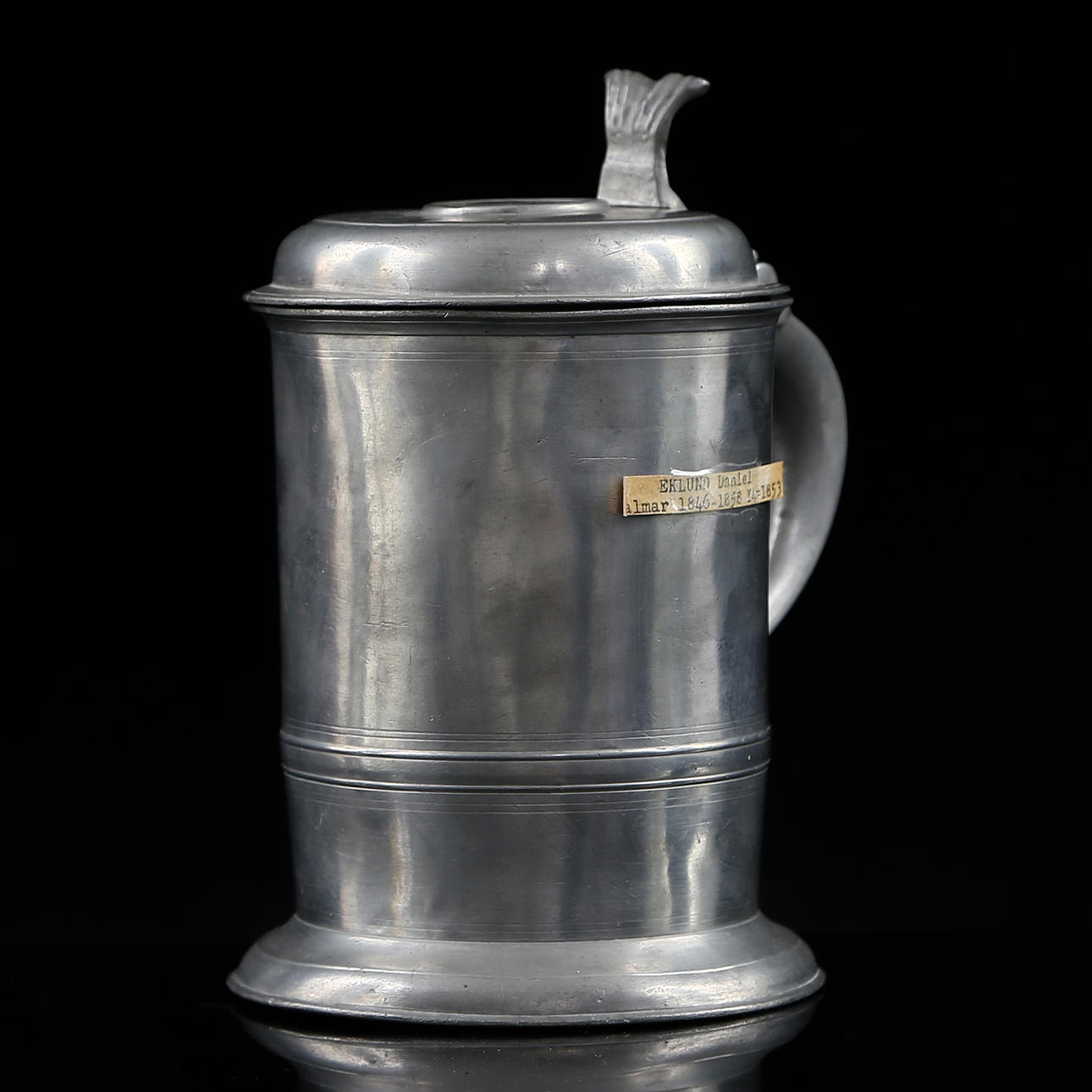 Ålders samt bruksslitage. Bucklor. Kant invändigt med mindre skador. märke invändigt efter etikett/beläggning.