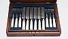 Schatull ca 29x24x6,5 cm 12 gafflar, längd ca 16 cm 12 knivar, längd ca 19,5 cm.