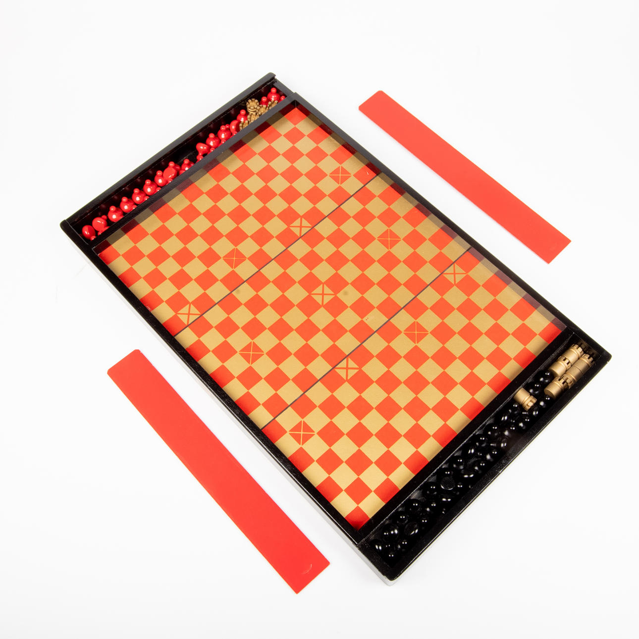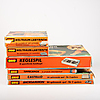 En rymdlaburint saknar kula, pjäser saknas till Castello, Tippe canoe saknar kula samt Keglespil saknar en kägla, bruksslitage samt slitage på samtliga kartonger.