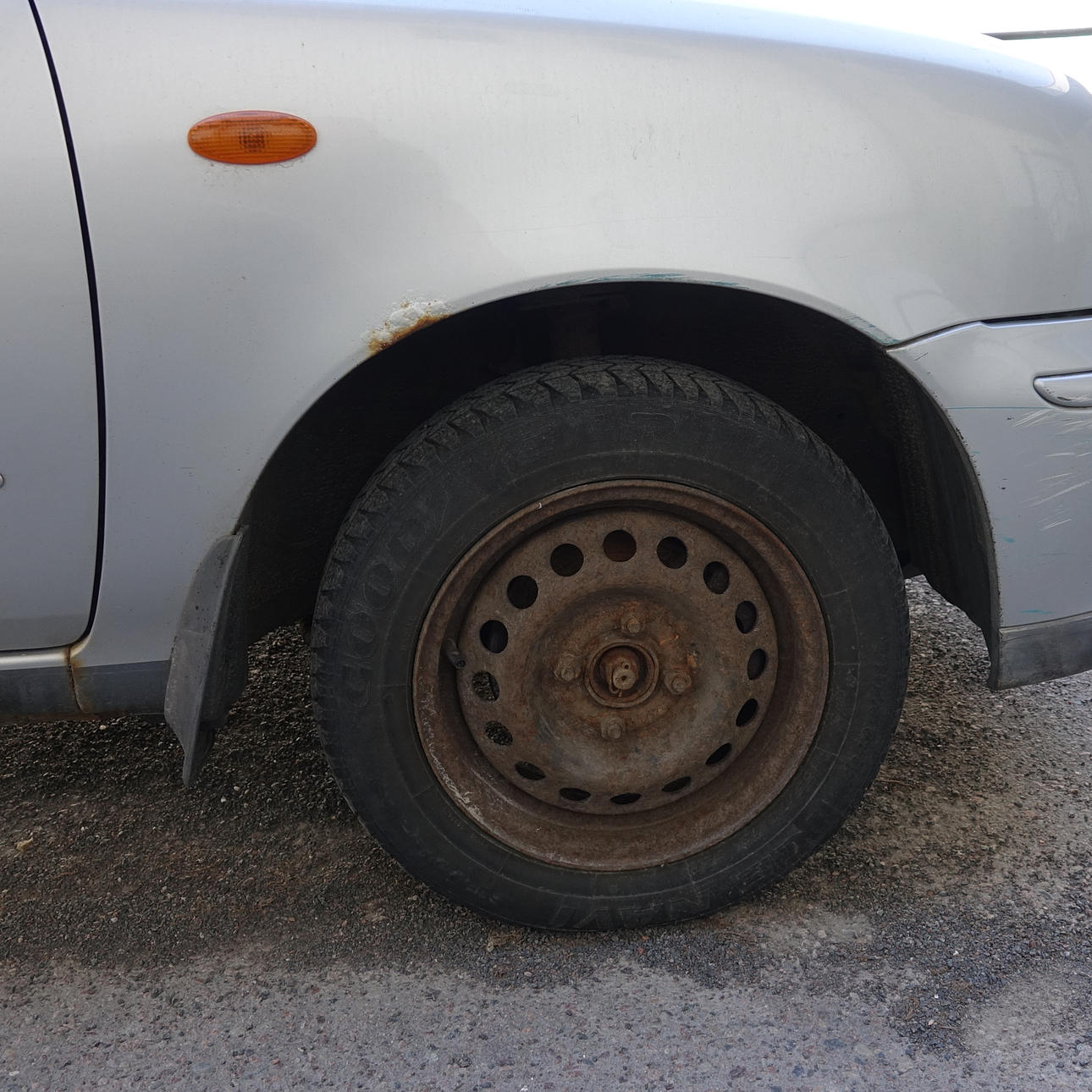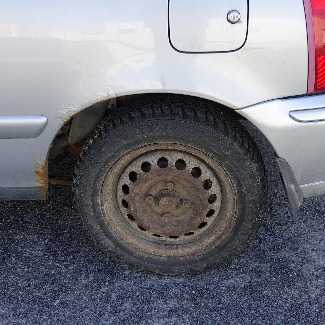 Mindre rostfläckar på skärmar, en mindre buckla på bakre stötfångare