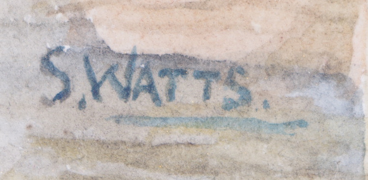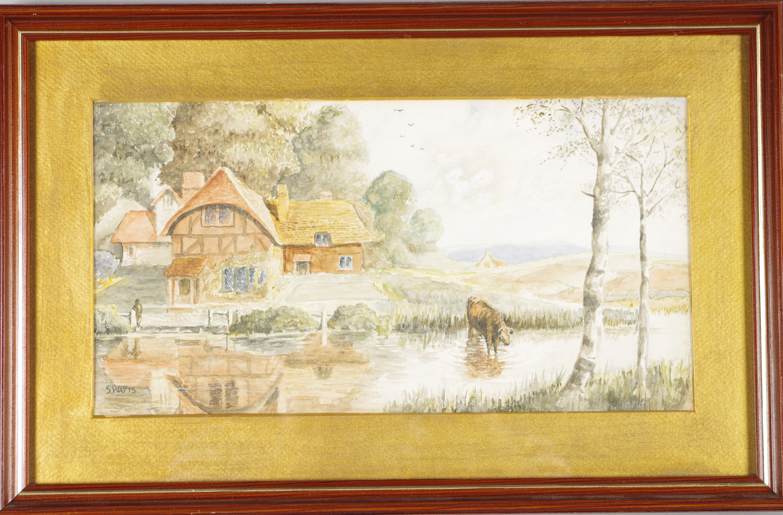 105205. S. WATTS. Landskap med ko, akvarell.