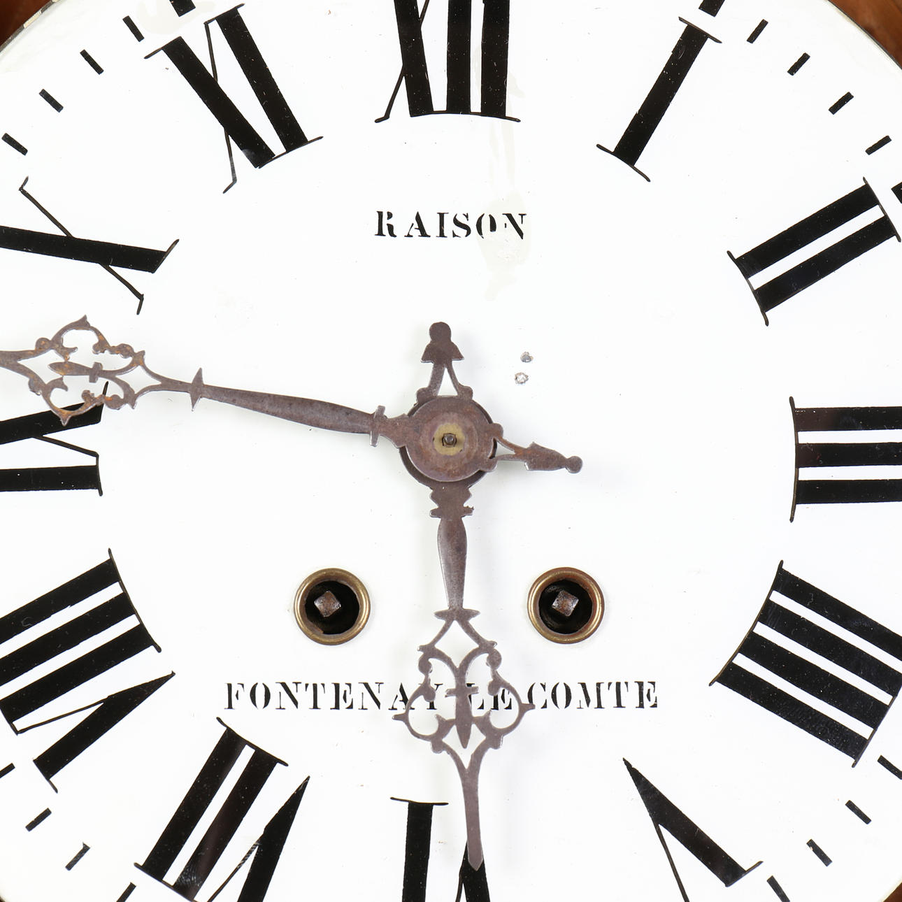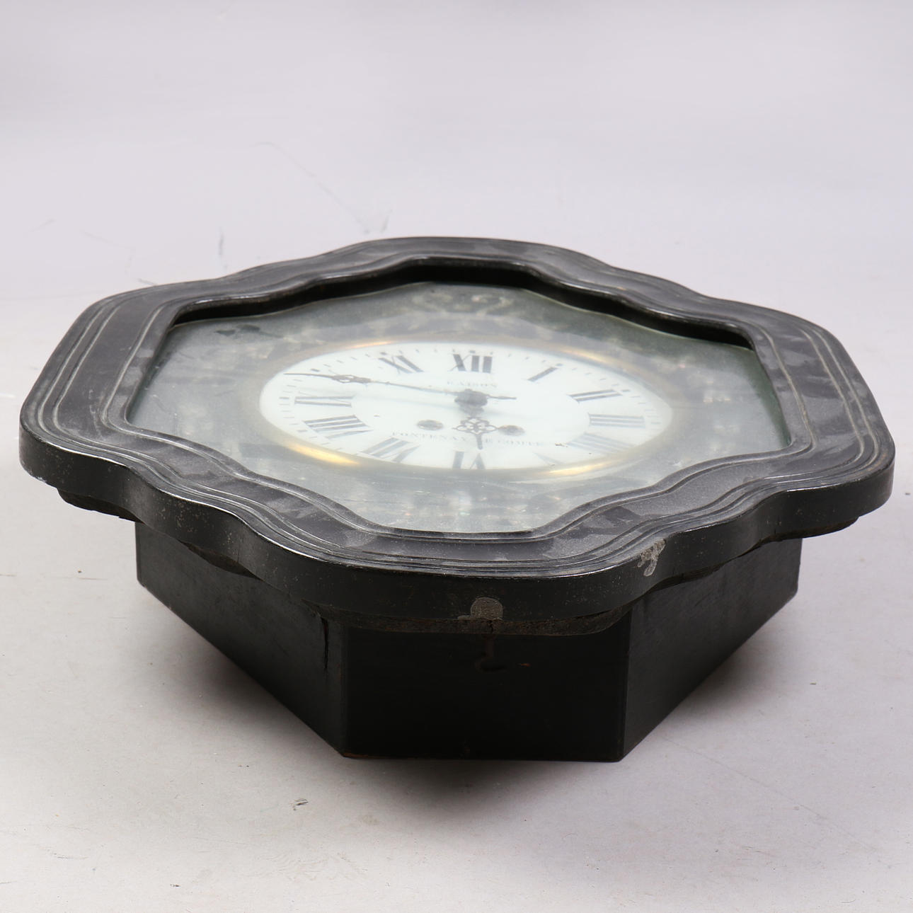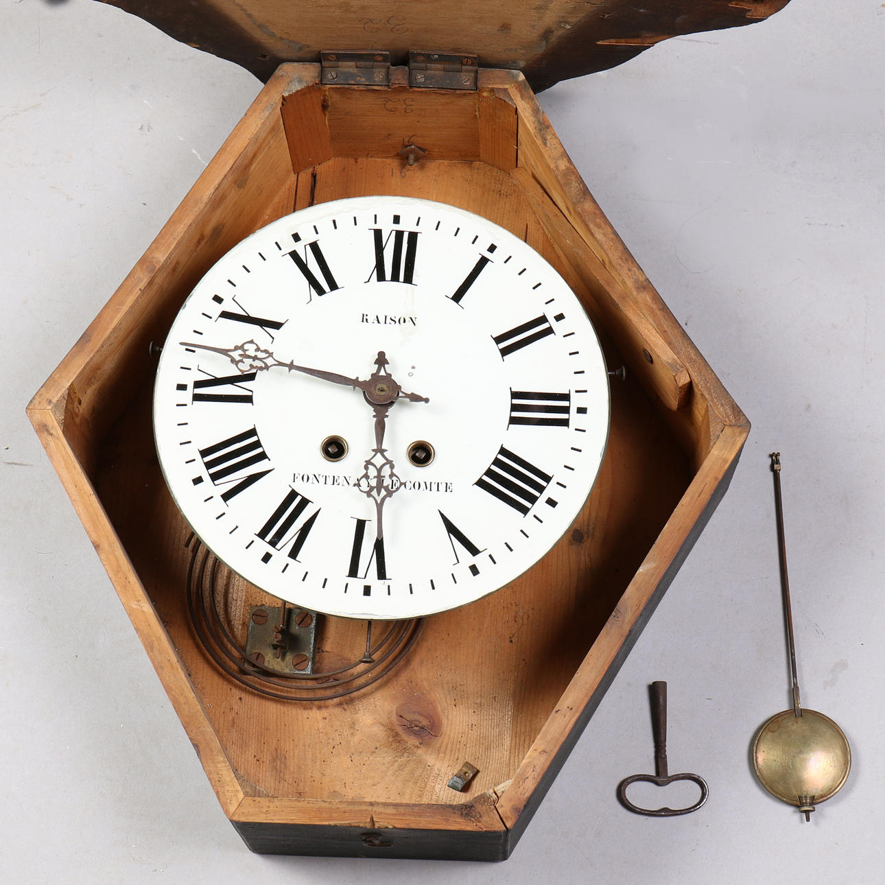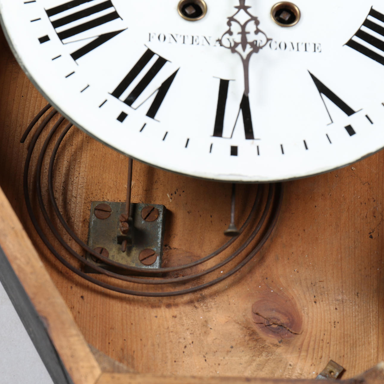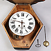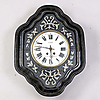 Väggur med emaljerad urtavla, fodral i svärtat trä samt dekor av pärlemoinlägg