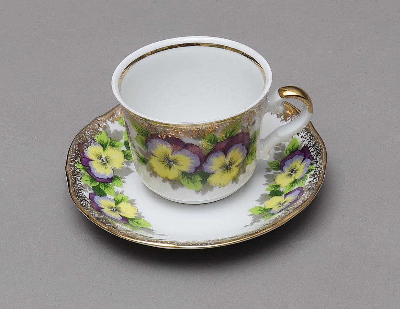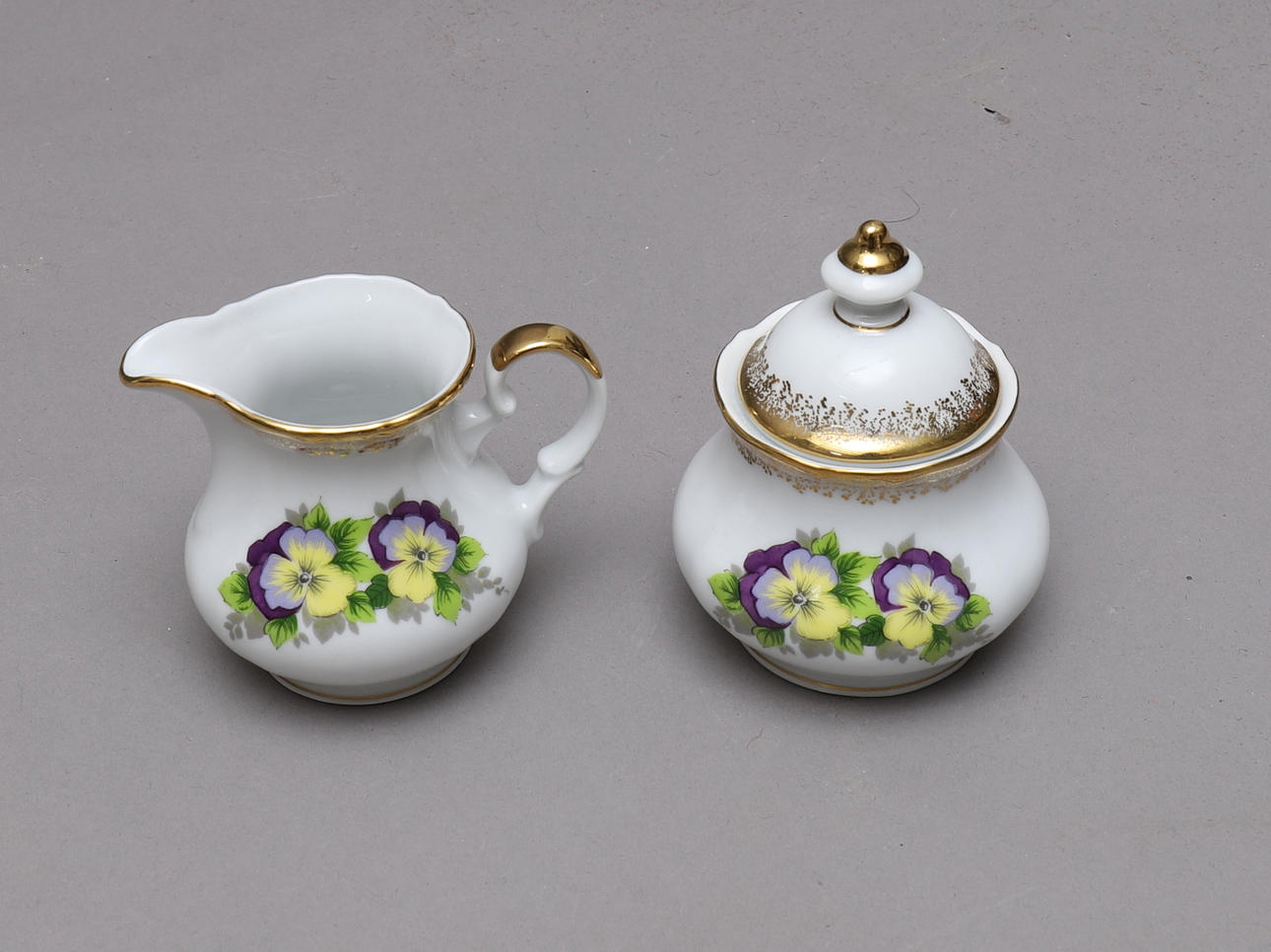 Vit botten med dekor av violer. Guldkant.