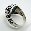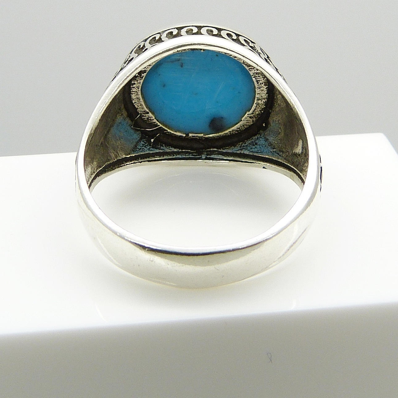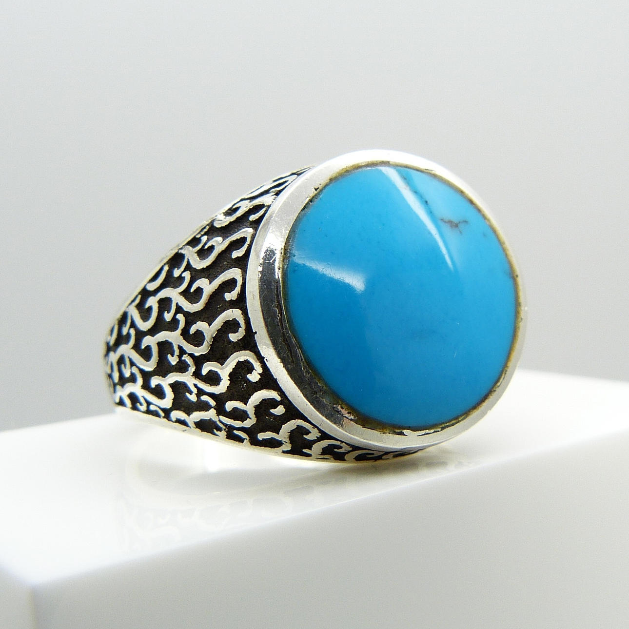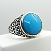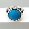 Det viktigaste inslaget i denna ring är en rund, turkosfärgad sten. Denna sten är något kupolformad och mäter 15 mm i diameter, ungefär.