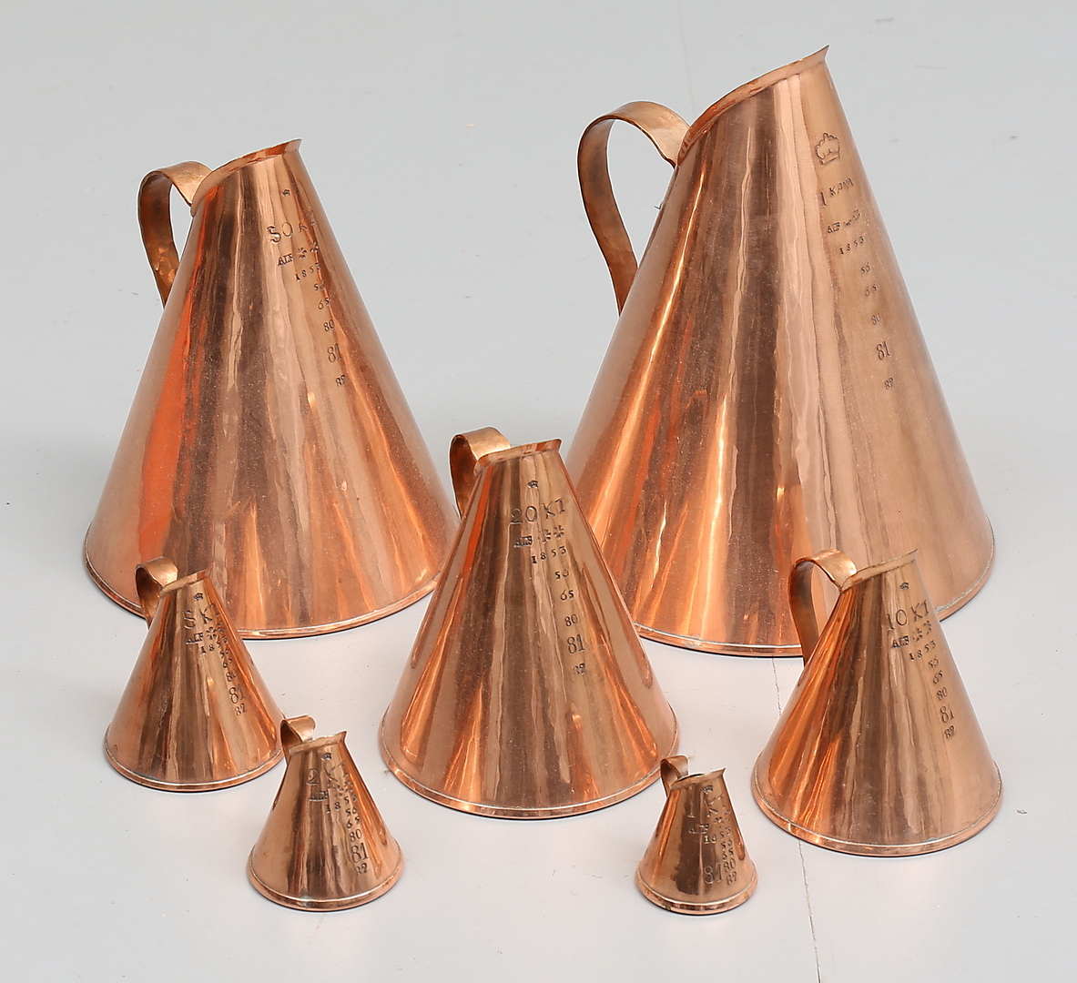 106673. MÅTTSATS, koppar, 7 delar.