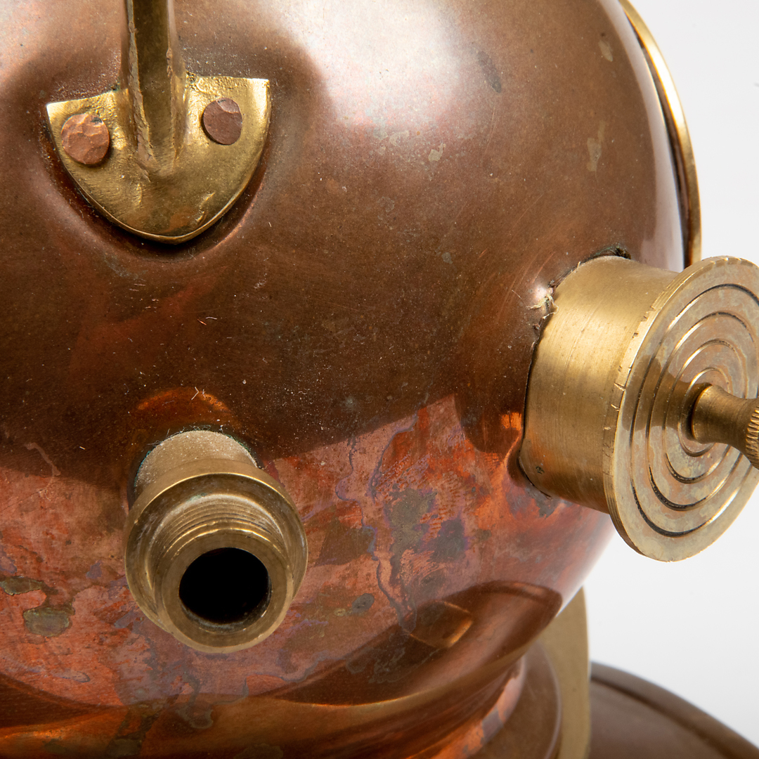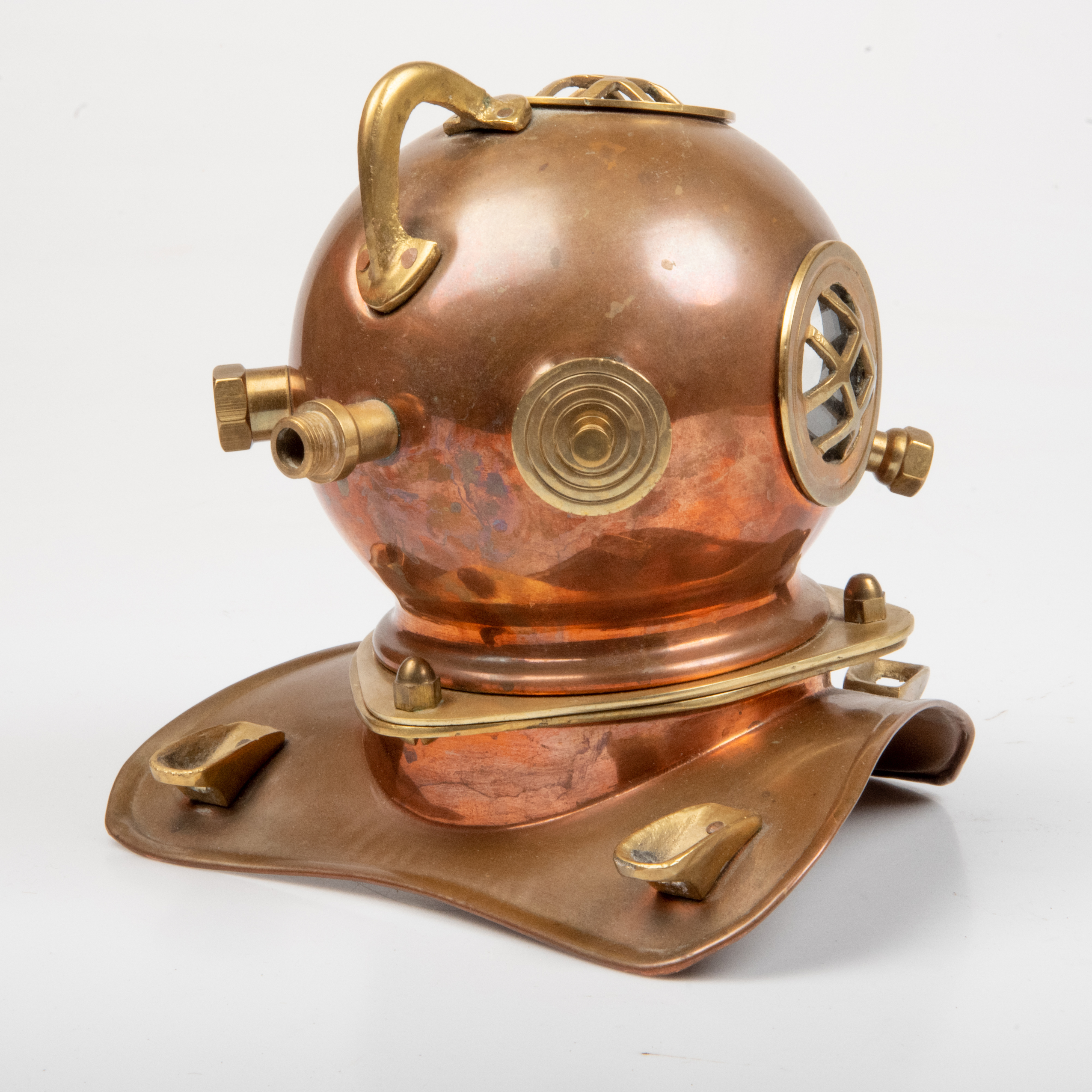 1067070. DYKARHJÄLM, prydnad, koppar/mässing.