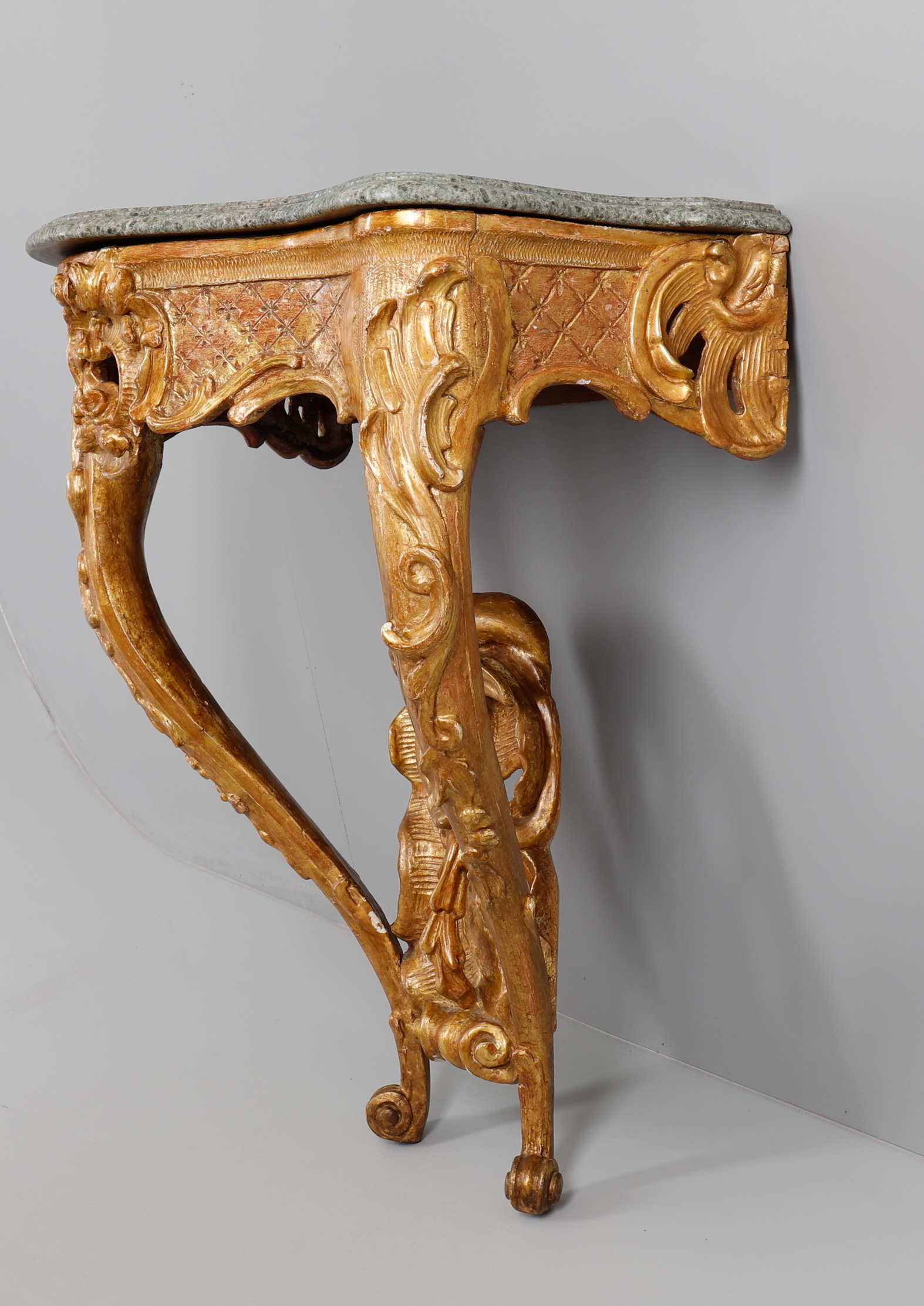 1069751. KONSOLBORD, FÖRGYLLT TRÄ OCH KOMPOSITION, 1800-TALETS SLUT.