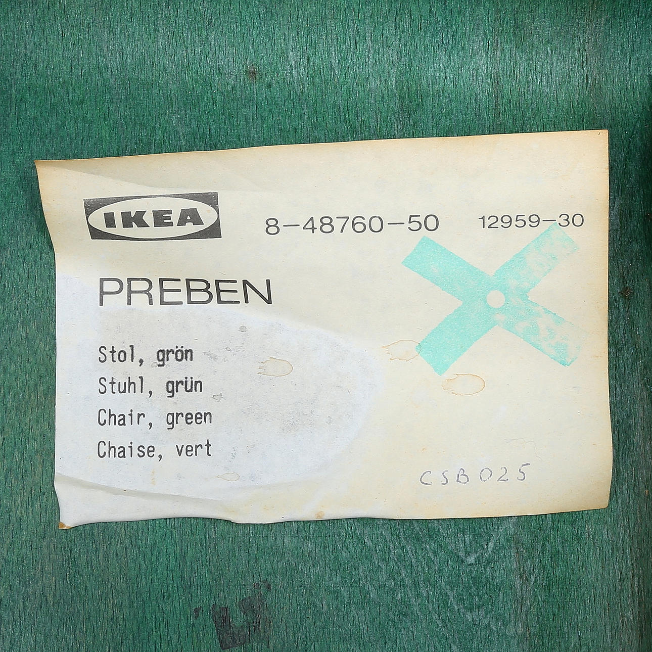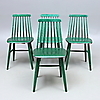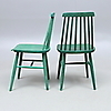 Grönbetsade. Delvis etikettmärkta. Sitthöjd 45, rygg höjd ca 44, rygghöjd ca 82 cm.