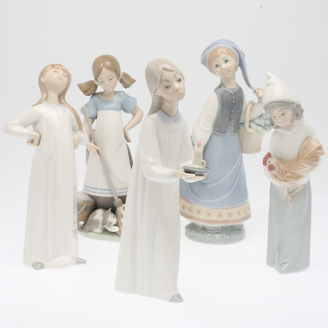 1078249. FIGURINER, 5 st, porslin, Lladro, Spanien.