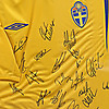 Autografer från svenska landslaget 2006, Zlatan Ibrahimović, Henke Larsson, Olof Mellberg m. fl. Mått 71x50 cm.
