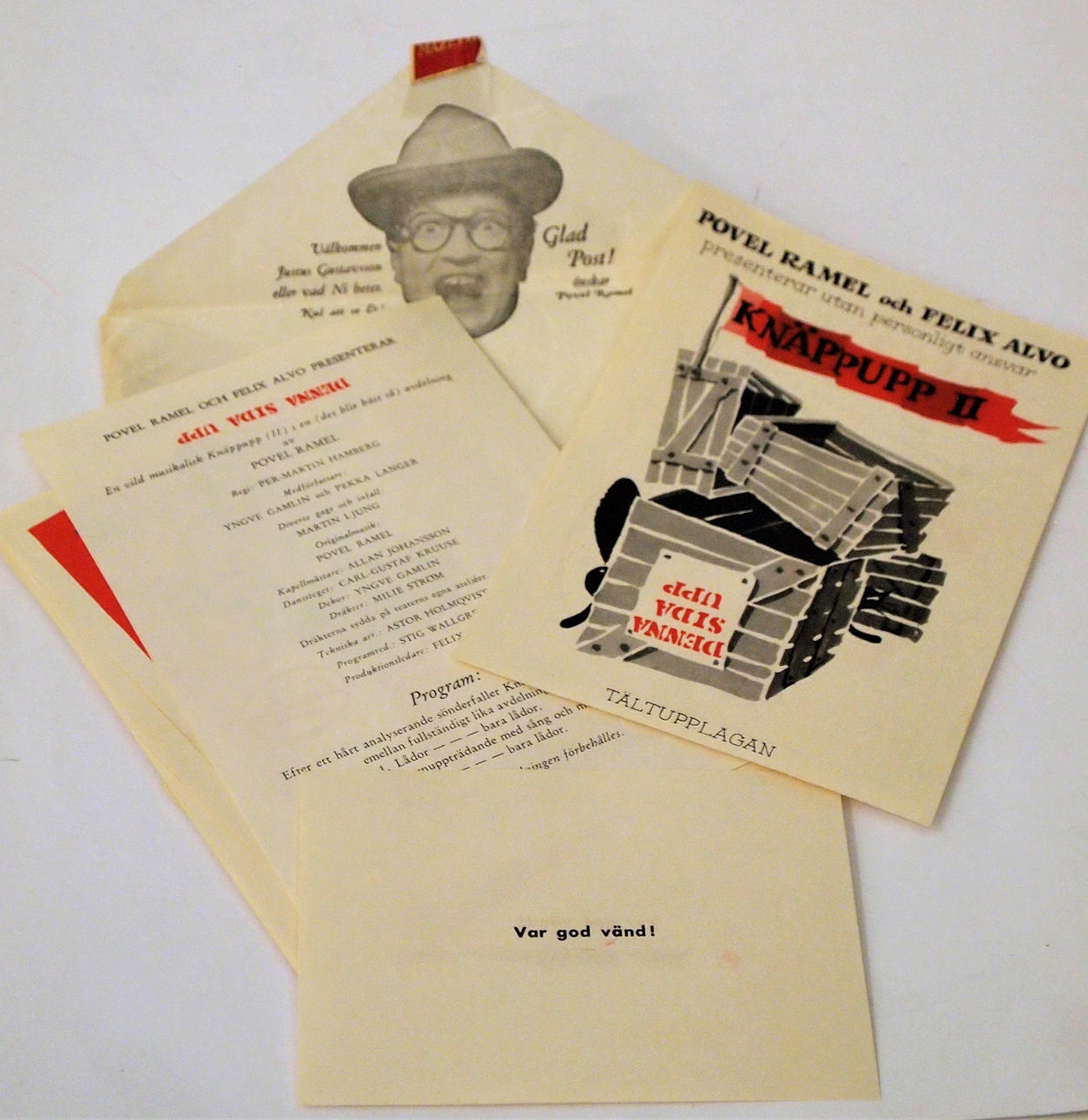 1079337. PROGRAM, 4 st, Povel Ramel, "Knäppupp".