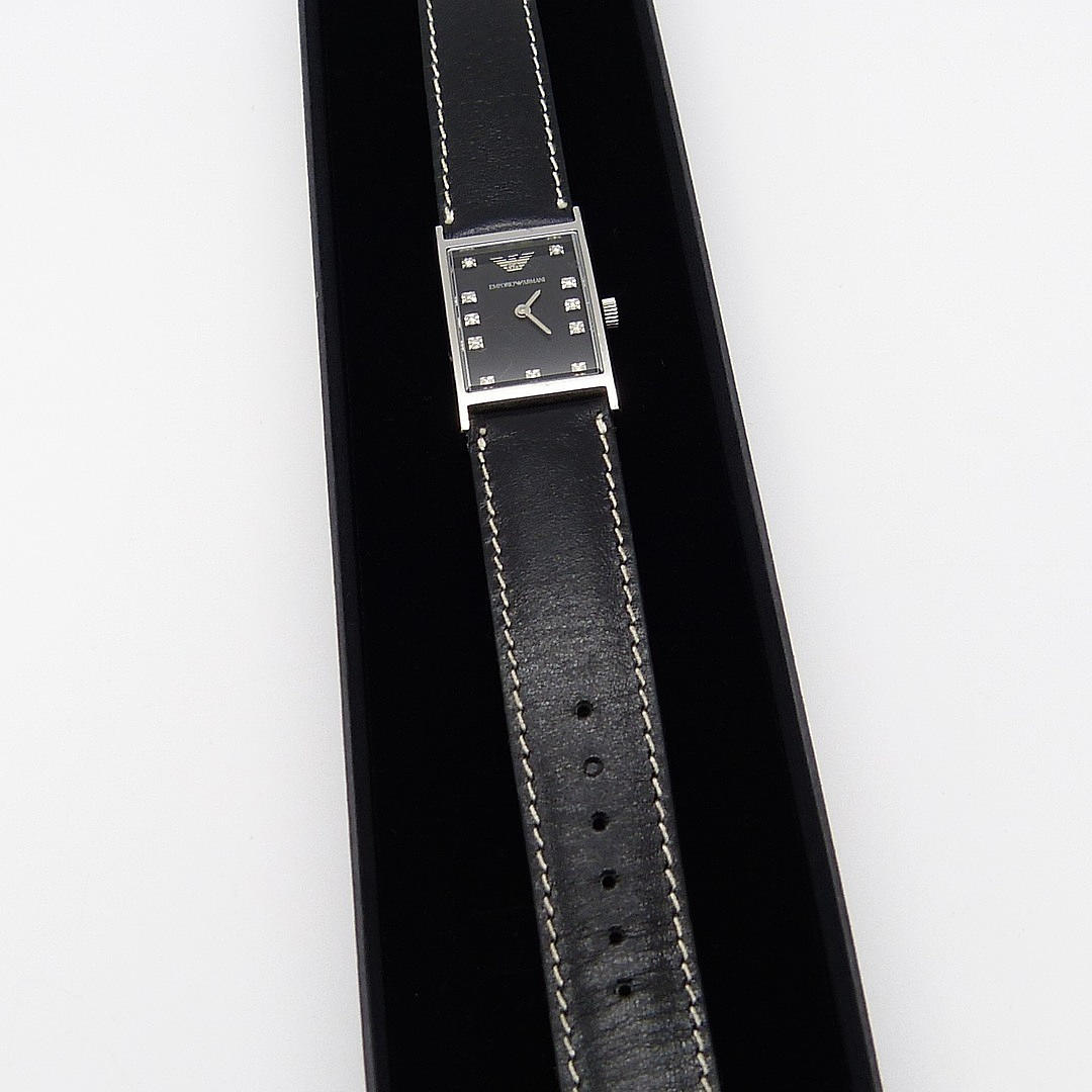 En original Emporio Armani damklocka med diamant prick urtavla.