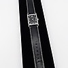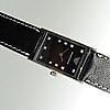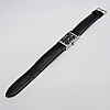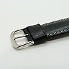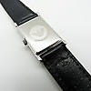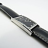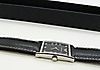 Denna klocka innehåller ett nytt batteri och en ny svart läderrem med silverfärgat spänne. Den levereras i en svart låda..