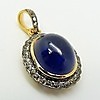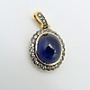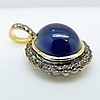 Huvudstenen i detta hänge är en stor, oval, polerad, cabochonslipad, behandlad blå safir ädelsten på 6,50 ct, ca.