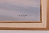 Vinterlandskap med stugor. Troligen motiv från Norge. Signerad