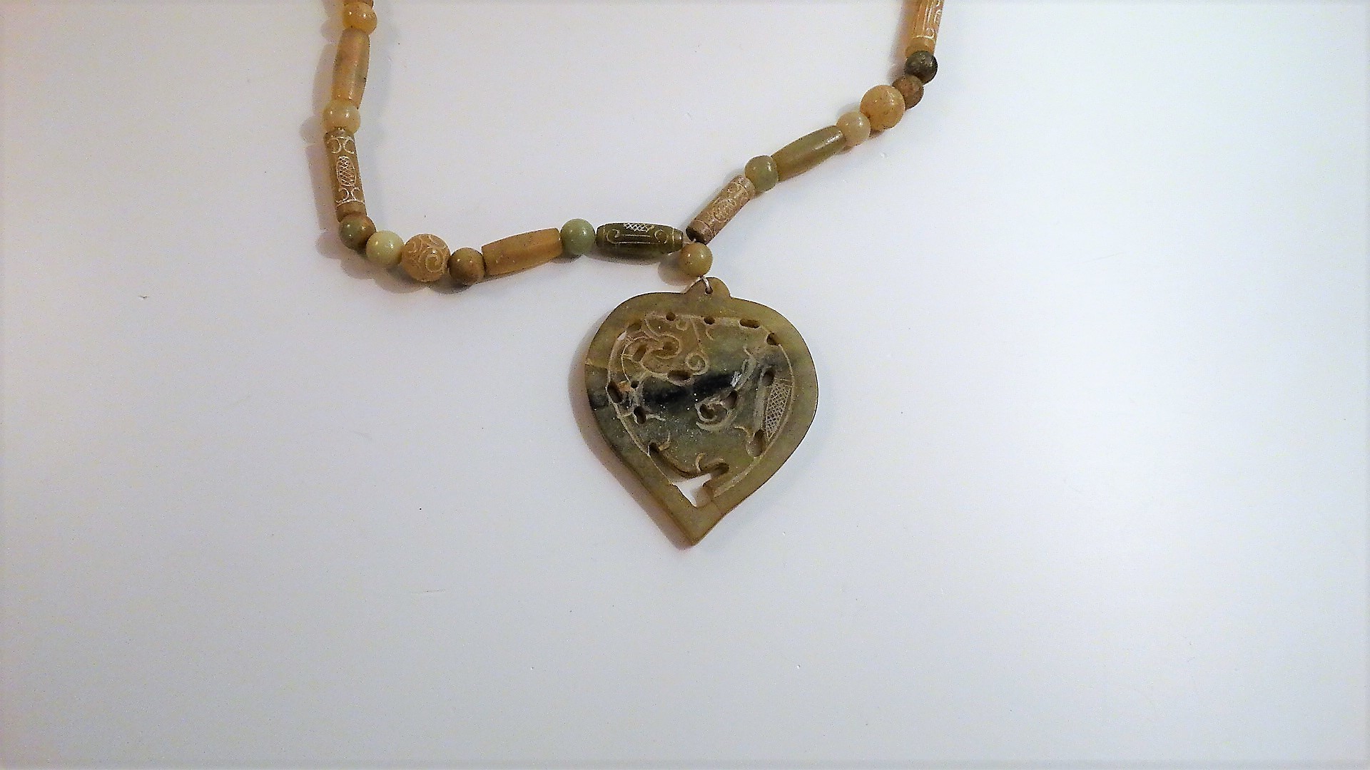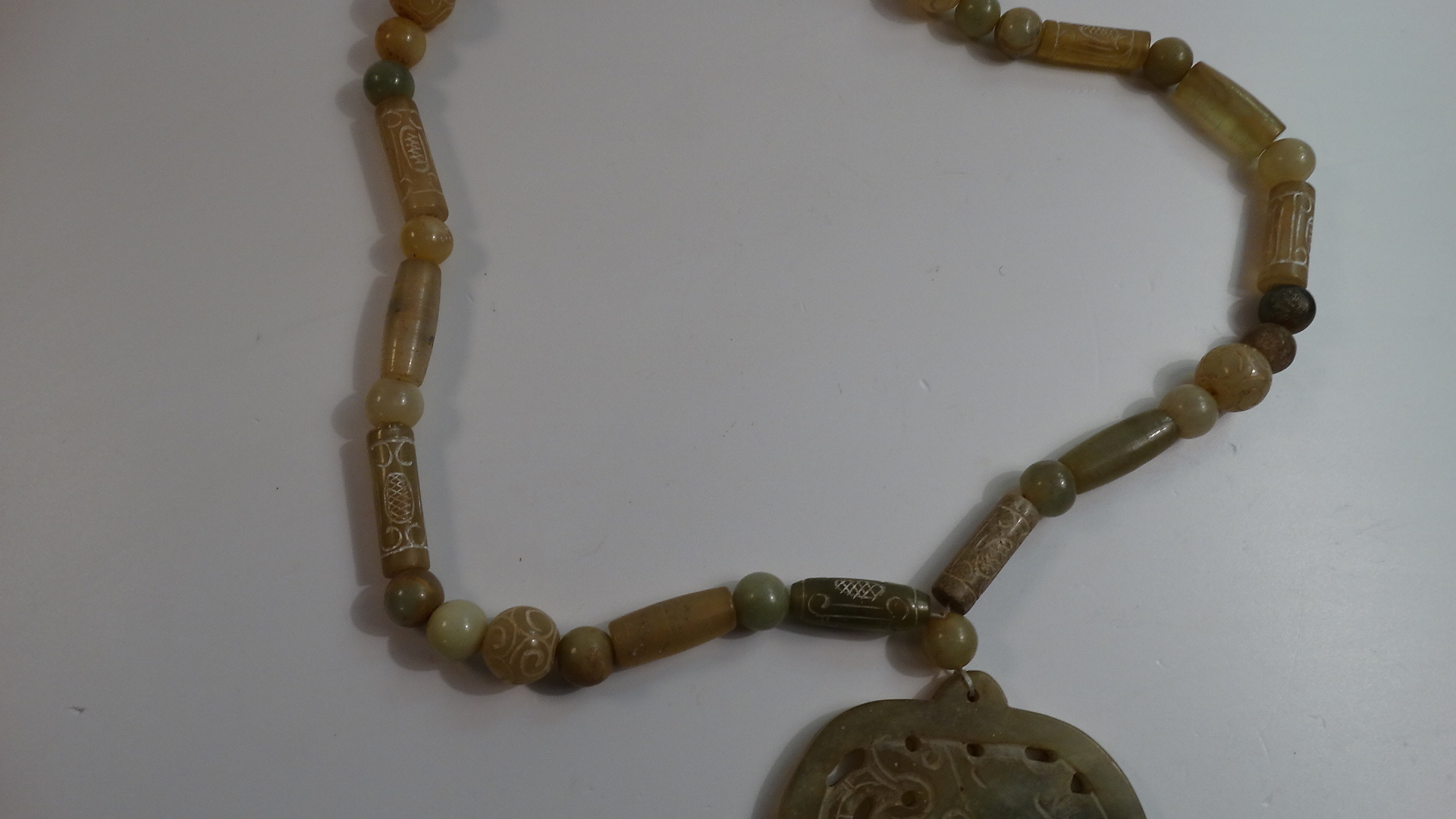 1082854. TUNG JADE HALSBAND, ljusbruna färger.