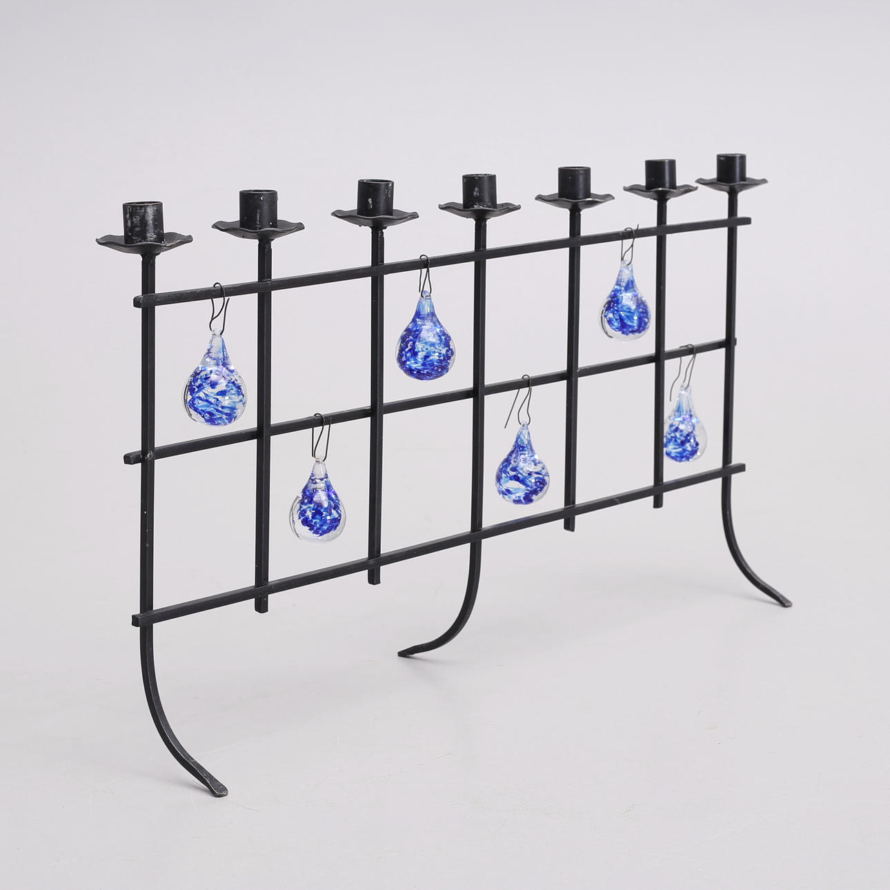 1083977. LJUSSTAKE, smide med glaskulor.