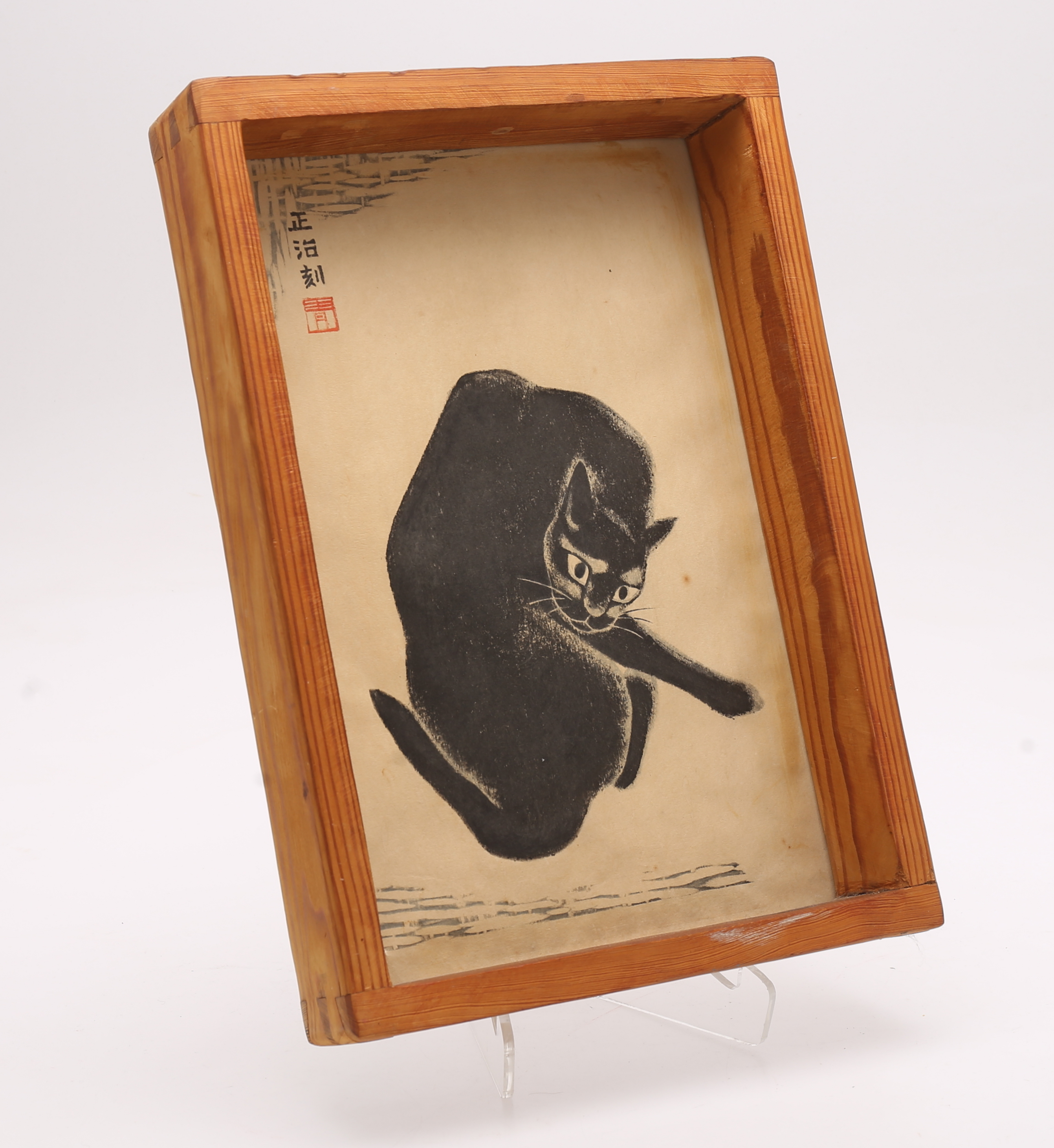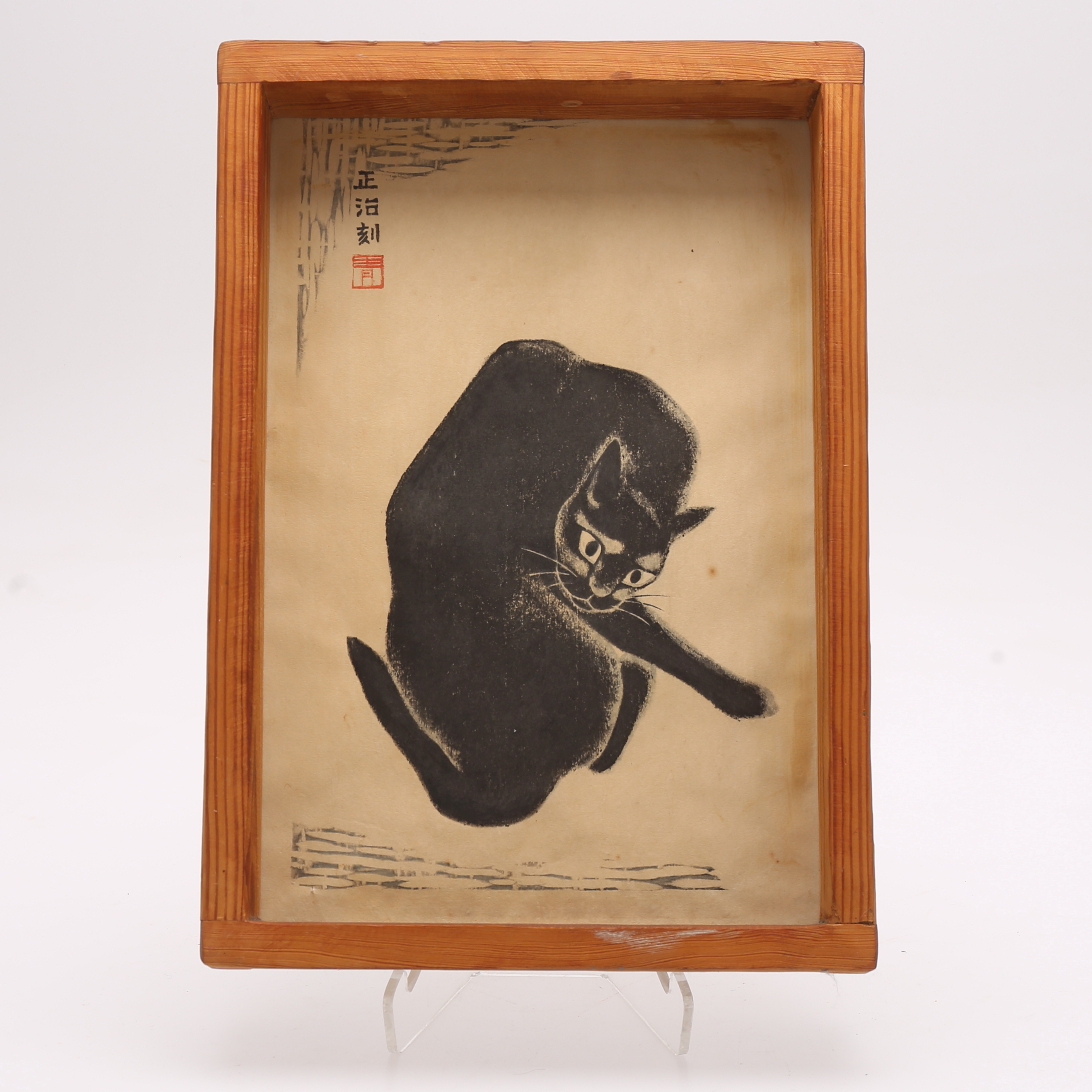 1086731. OIDENTIFIERAD KONSTNÄR. Katt. Målning på rispapper. Japan. Signerad.
