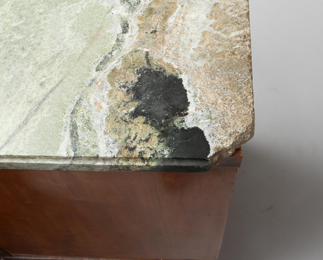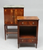 Mahognyfanér. Pottskåpets mått Längd 51 34 höjd 73 cm. Skåpets mått längd 56, bredd 42, höjd 96 cm.