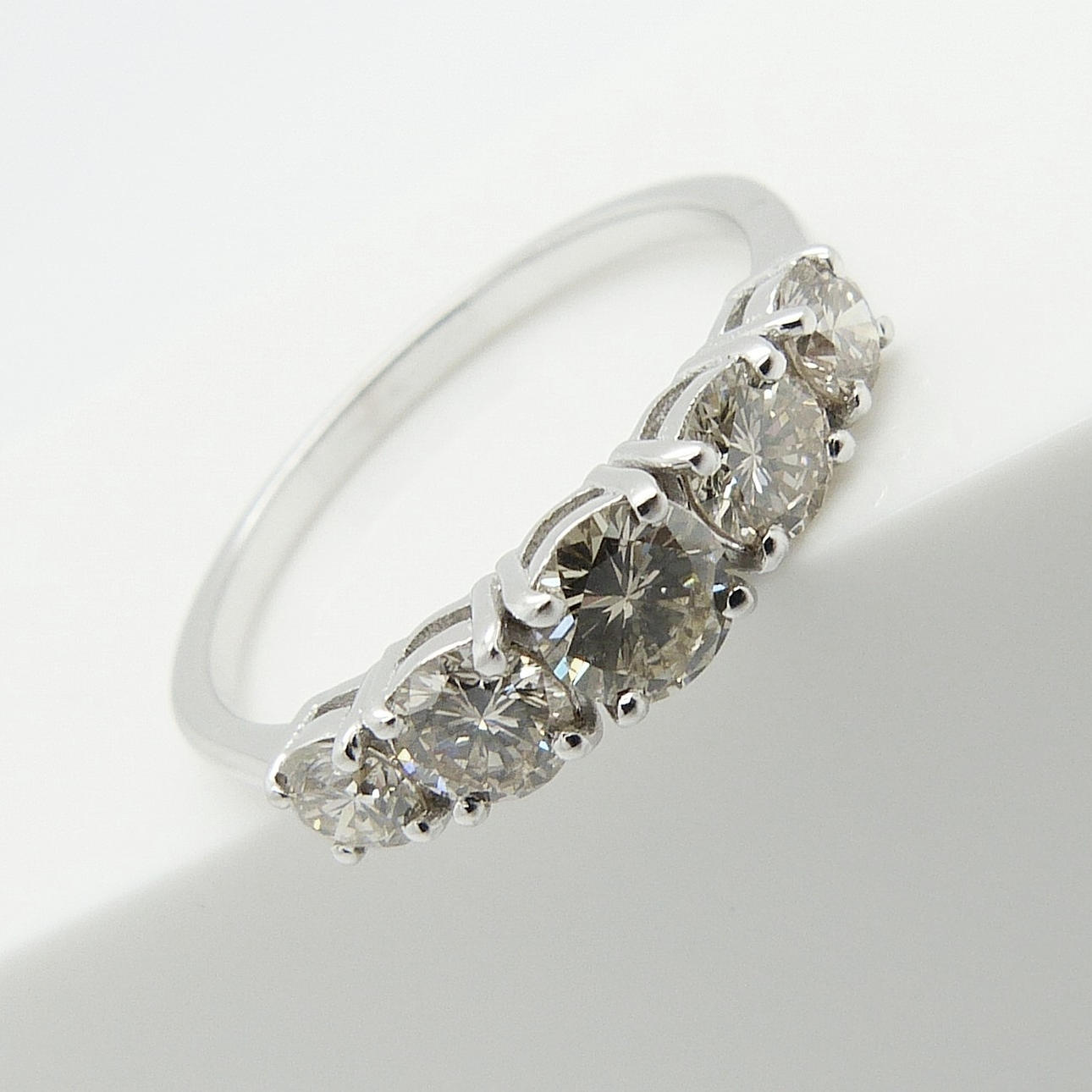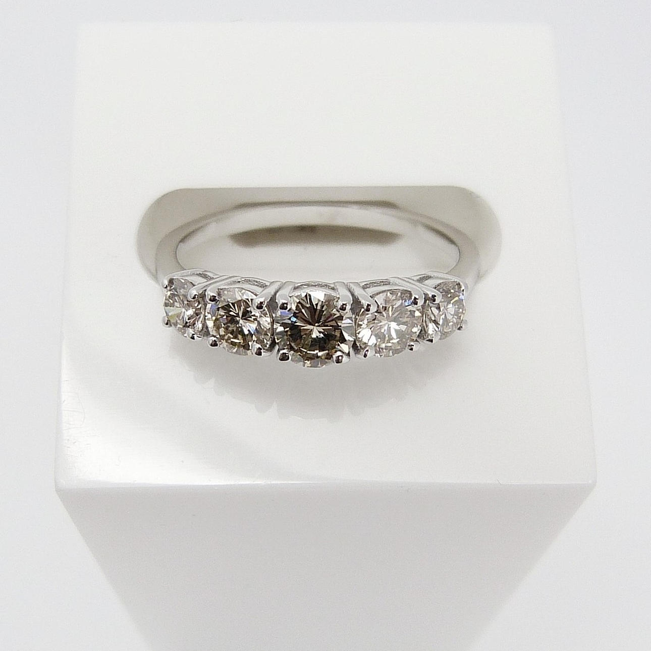 Ring 18k vitguld med 5 x graderade diamanter med en total karatvikt på 1.04 karat.