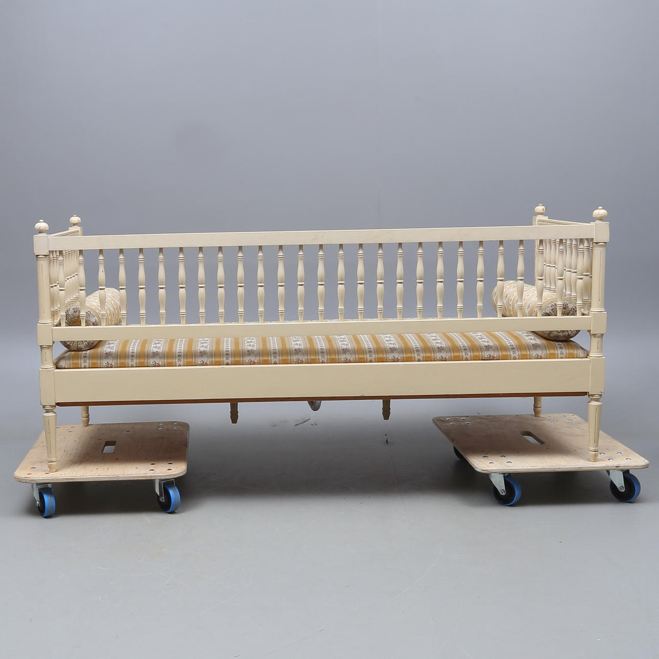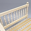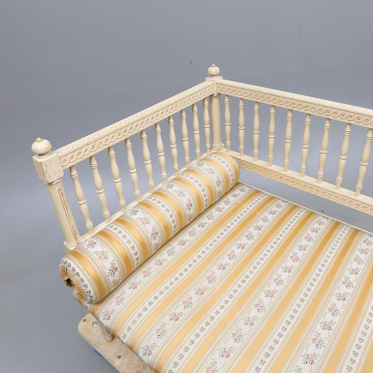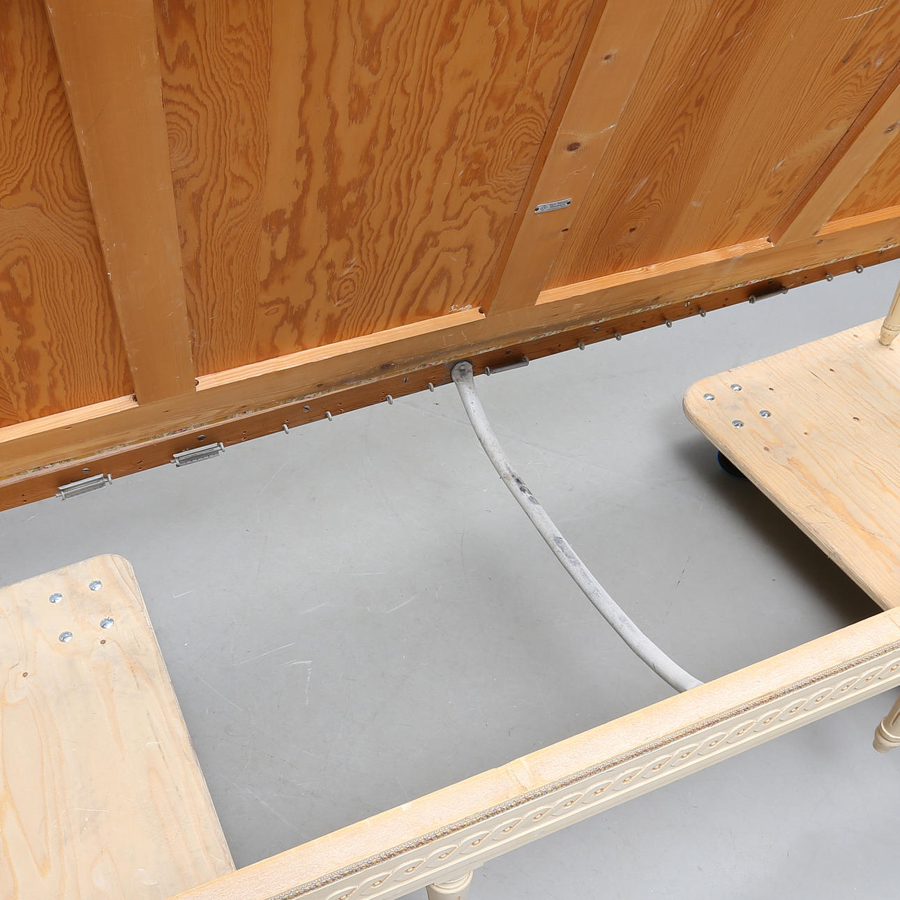 Slitage, färgbortfall, torrstprickor. Resårbotten borttagen.
