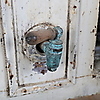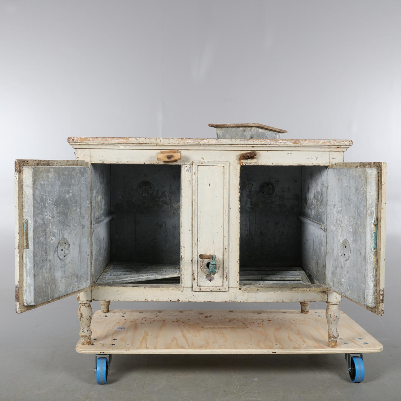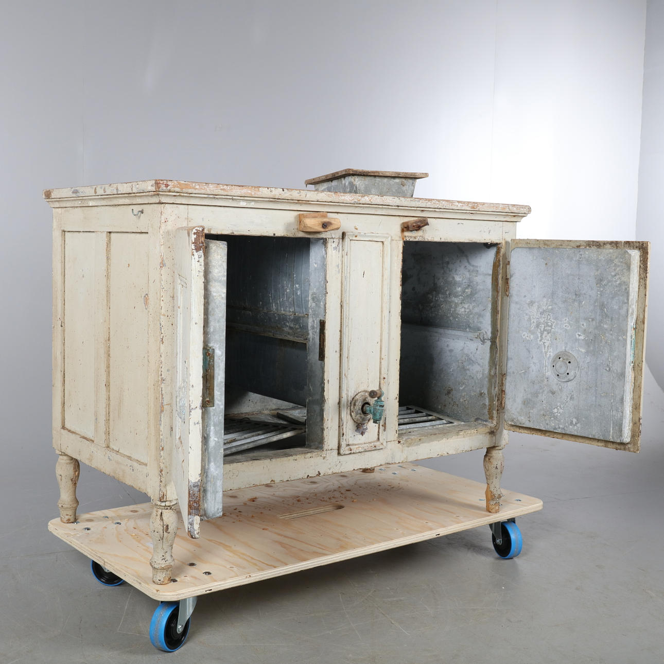 2 dörrar med tapp i mitten, lucka för is uppifrån