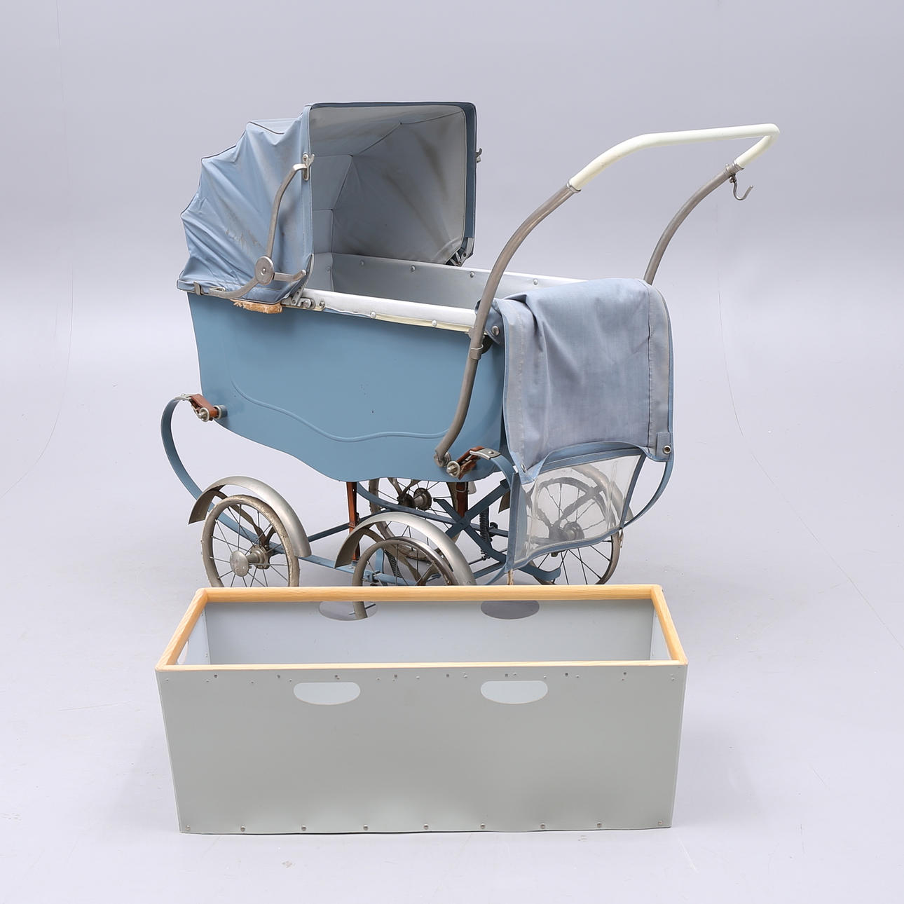 BARNVAGN, trä, vinyl, 1940-tal.