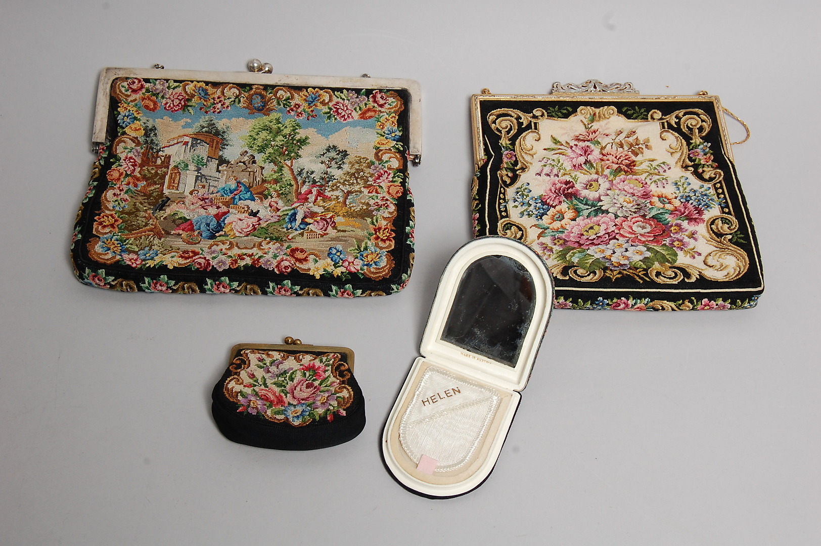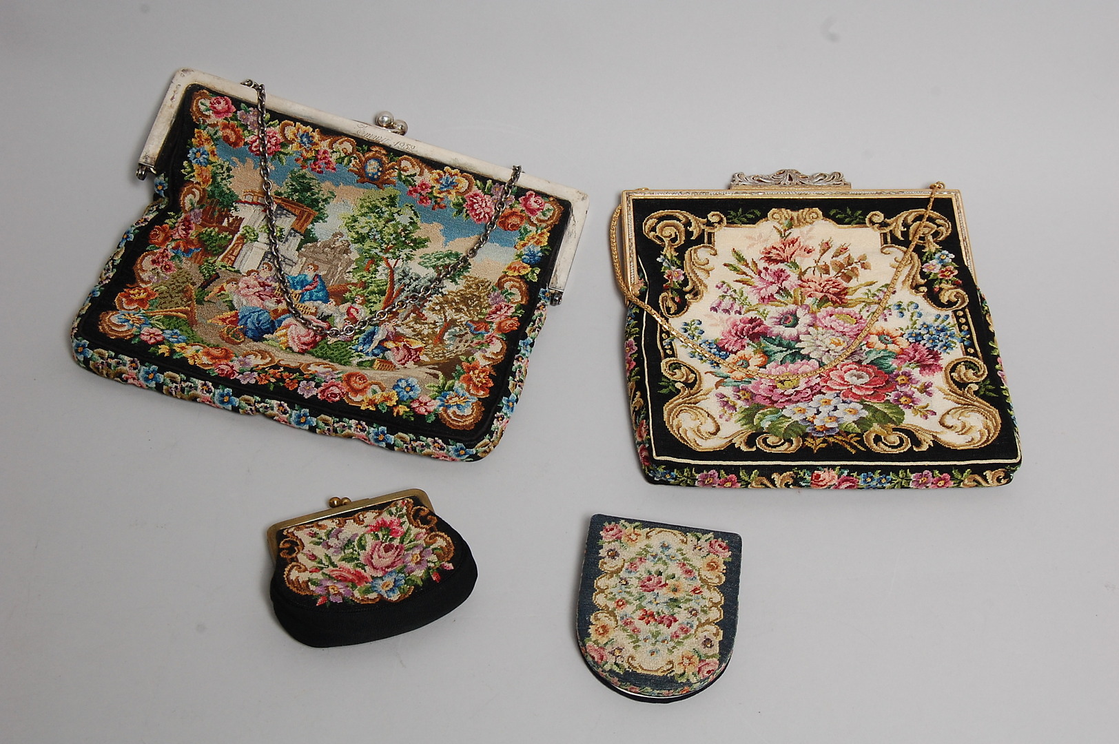 109623. VÄSKOR, börsar, 4 delar, bland annat silver.